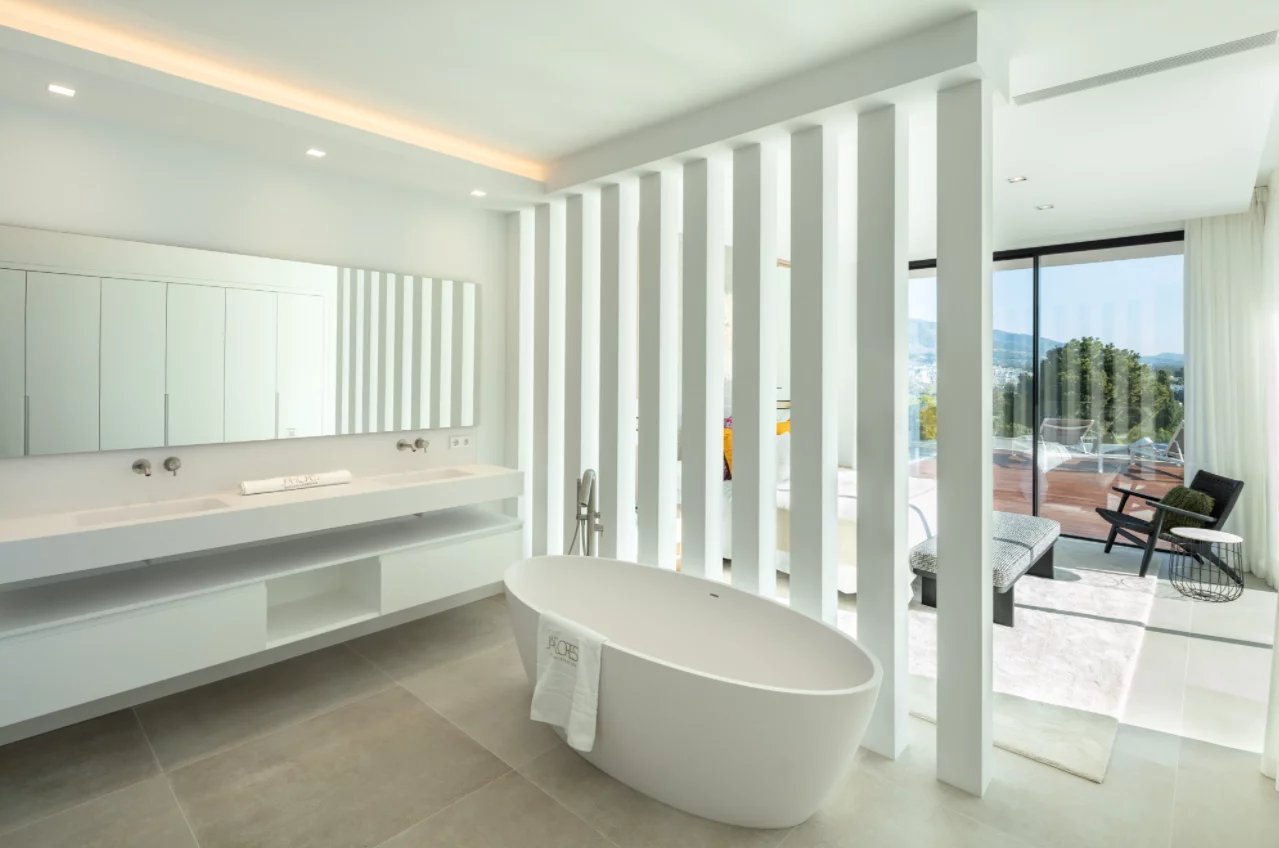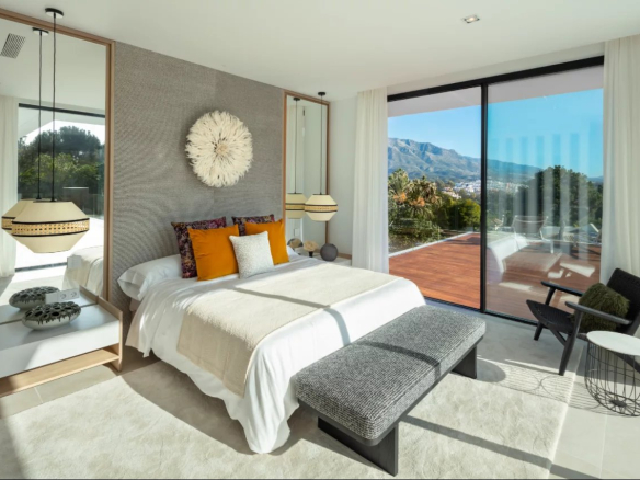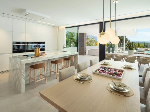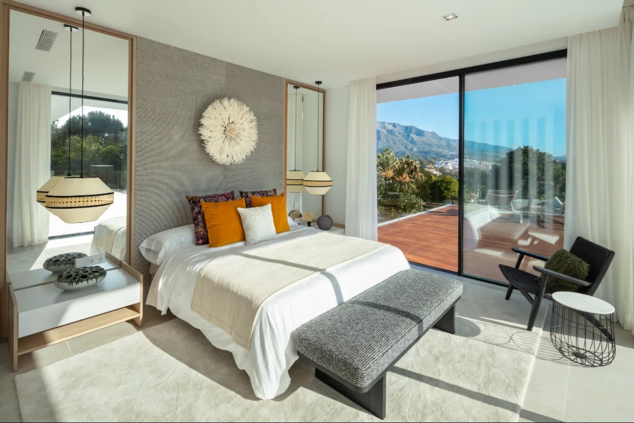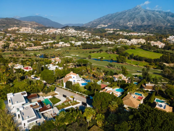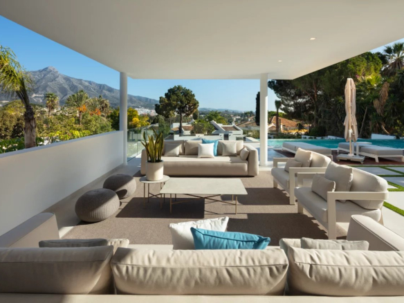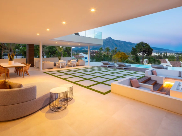 Nous sommes ravis de présenter à la vente cette luxueuse maison de style LA située au cœur de Nueva Andalucia, avec une vue exceptionnelle sur la vallée du golf en direction de la montagne La Concha.