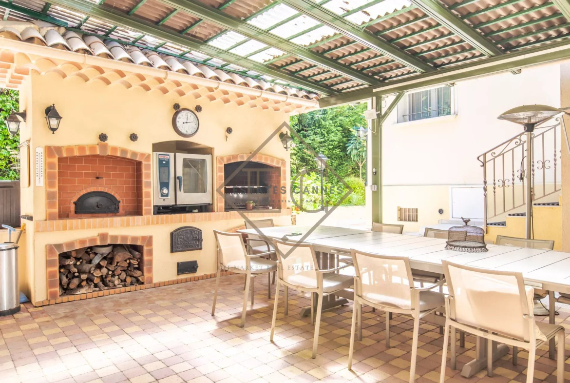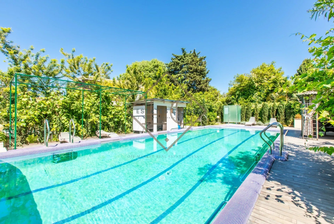 Édifiée sur un terrain paysager de 1 200 m², la propriété dévoile un jardin luxuriant, véritable havre de paix. Point fort de cette villa : une superbe piscine de 13 x 4 m, idéale pour profiter pleinement des journées ensoleillées de la Côte d’Azur.