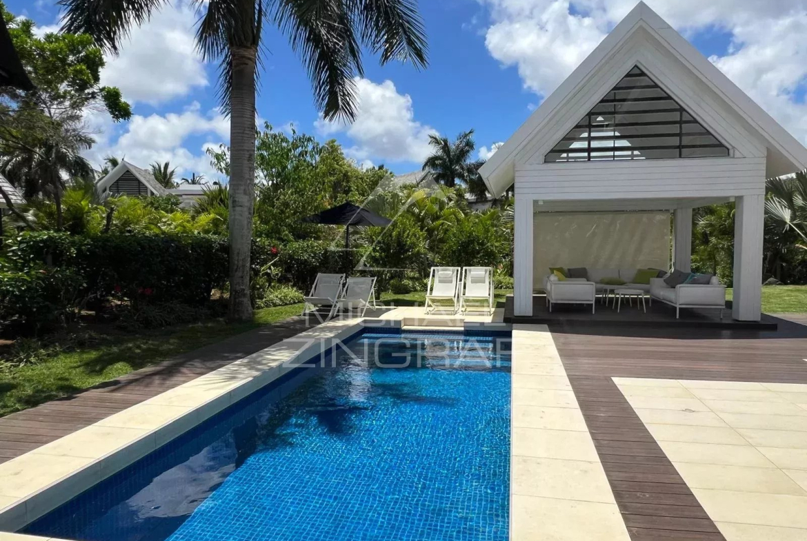 Située dans un quartier résidentiel haut de gamme et sécurisé, cette villa se niche au nord de l’île Maurice, à quelques pas des commodités et d’une des plages les plus prisées de l’île. Entourée d’un magnifique jardin tropical arboré, elle allie élégance, confort et sérénité.