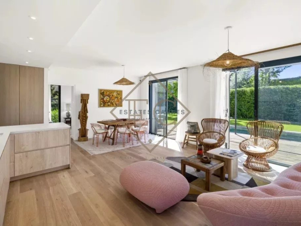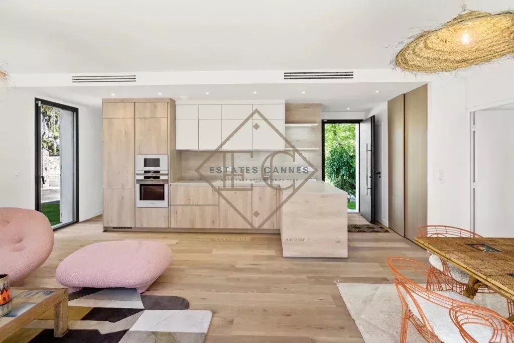 Découvrez cette somptueuse villa contemporaine située sur le versant Ouest du prestigieux Cap d’Antibes, à seulement quelques pas des plages mondialement célèbres. Avec ses 164 m² habitables, cette propriété neuve est un véritable havre de luxe méditerranéen.