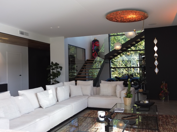 – une incroyable cave à vins, un espace sanitaire invités, une salle de sport lumineuse donnant sur une des terrasses, une buanderie … un grand garage pouvant accueillir au moins 3 voitures.