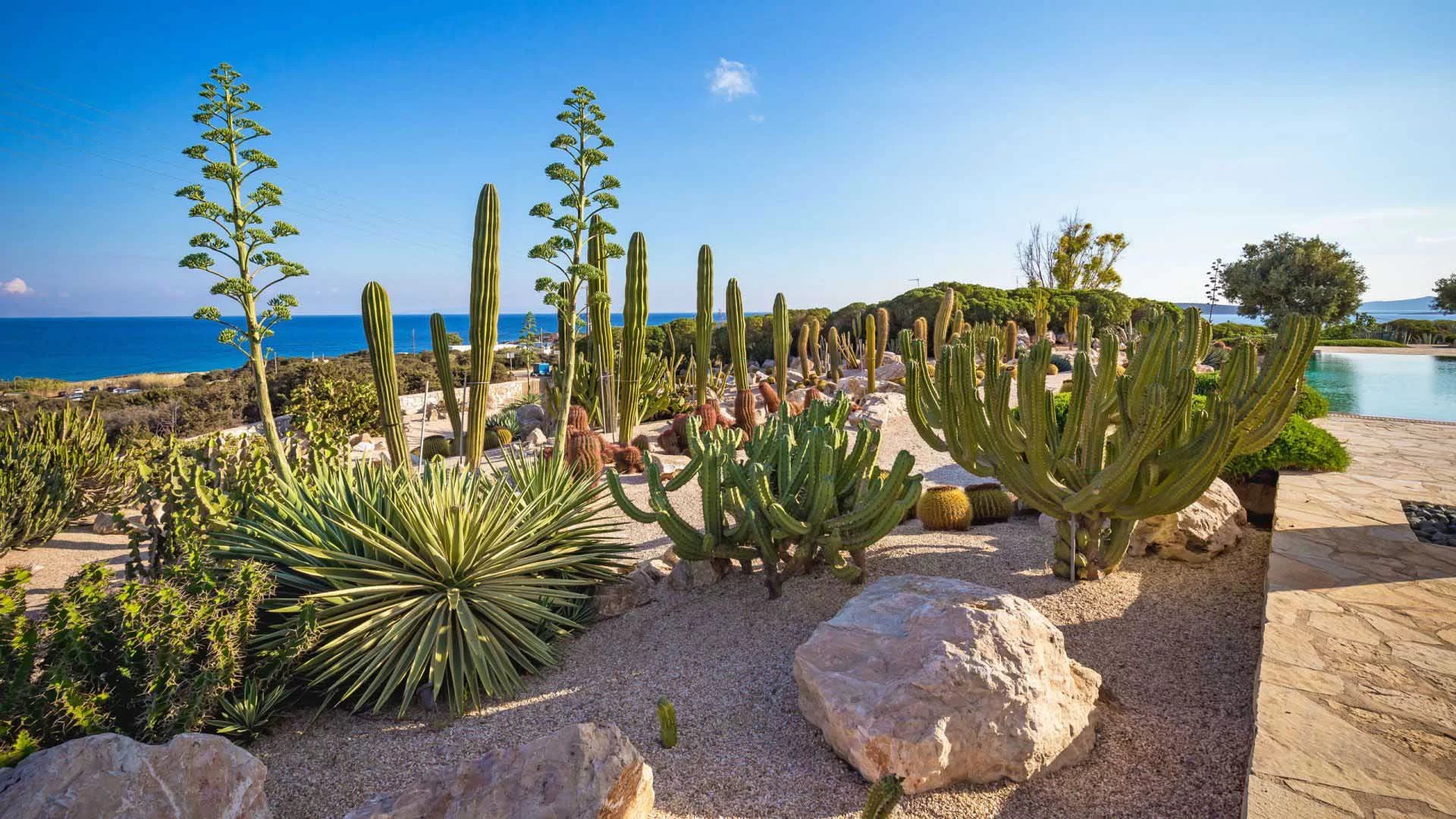 C’est à l’extérieur que le style de vie insulaire s’exprime pleinement : une piscine à débordement face à la mer, un vaste espace lounge sous pergola, un jardin de cactus sculptural, un pavillon dédié au yoga et un parcours privé de pitch & putt réservé aux golfeurs expérimentés.