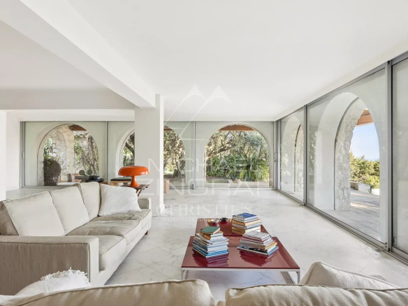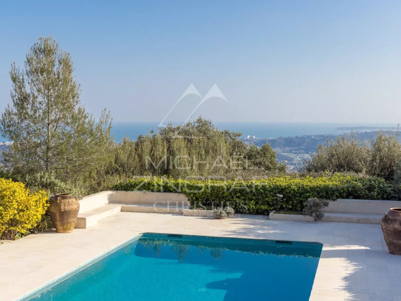 Exclusivité – Située dans le très prisé domaine des Hauts de Saint-Paul, dans un environnement calme et recherché, cette magnifique villa offre de grands espaces lumineux, avec une surface habitable d’environ 390 m² sur un terrain spacieux de 5 380 m². Elle bénéficie également d’une vue mer panoramique exceptionnelle s’étendant jusqu’au Cap d’Antibes.