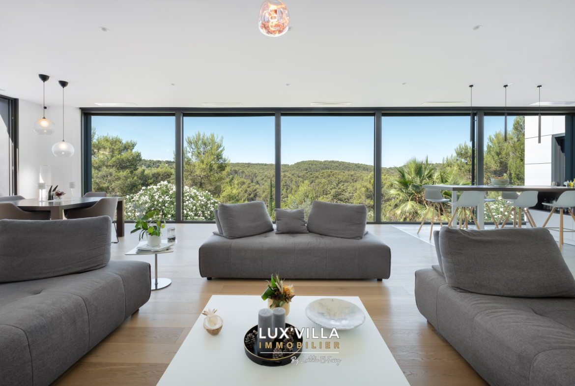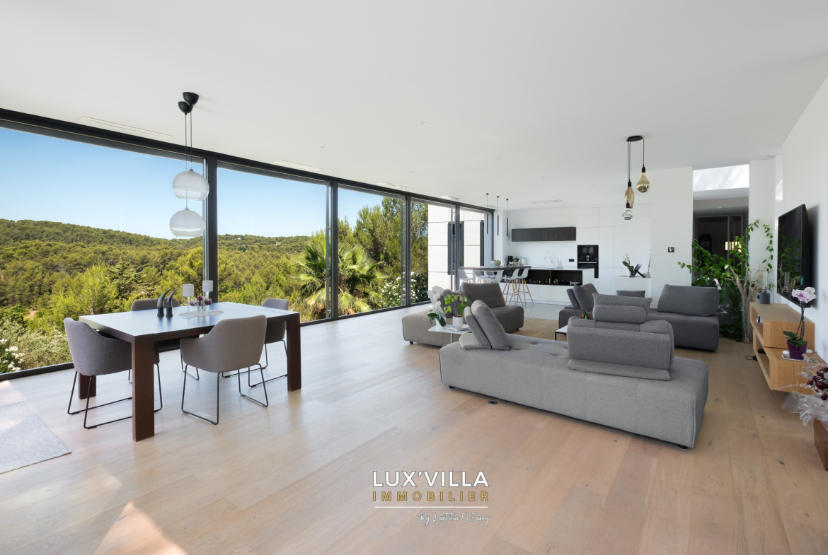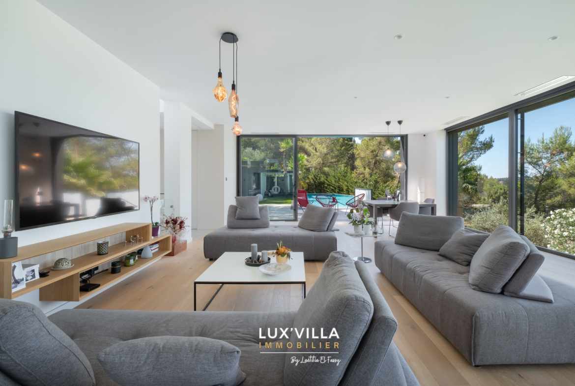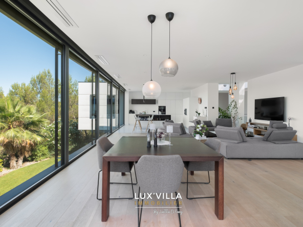 VILLA D’EXCEPTION : LUX’VILLA Immobilier a le plaisir de vous présenter ce bijou architectural, résolument contemporain. Située dans un domaine très prisé à seulement 5 minutes au nord de Montpellier, dans un cadre idyllique, cette villa d’exception de 375 m2 sur un beau terrain arboré de 3200m2, allie confort moderne et technologies de pointe. Exposée sud-ouest, elle offre une luminosité optimale et une vue imprenable sur la végétation luxuriante.