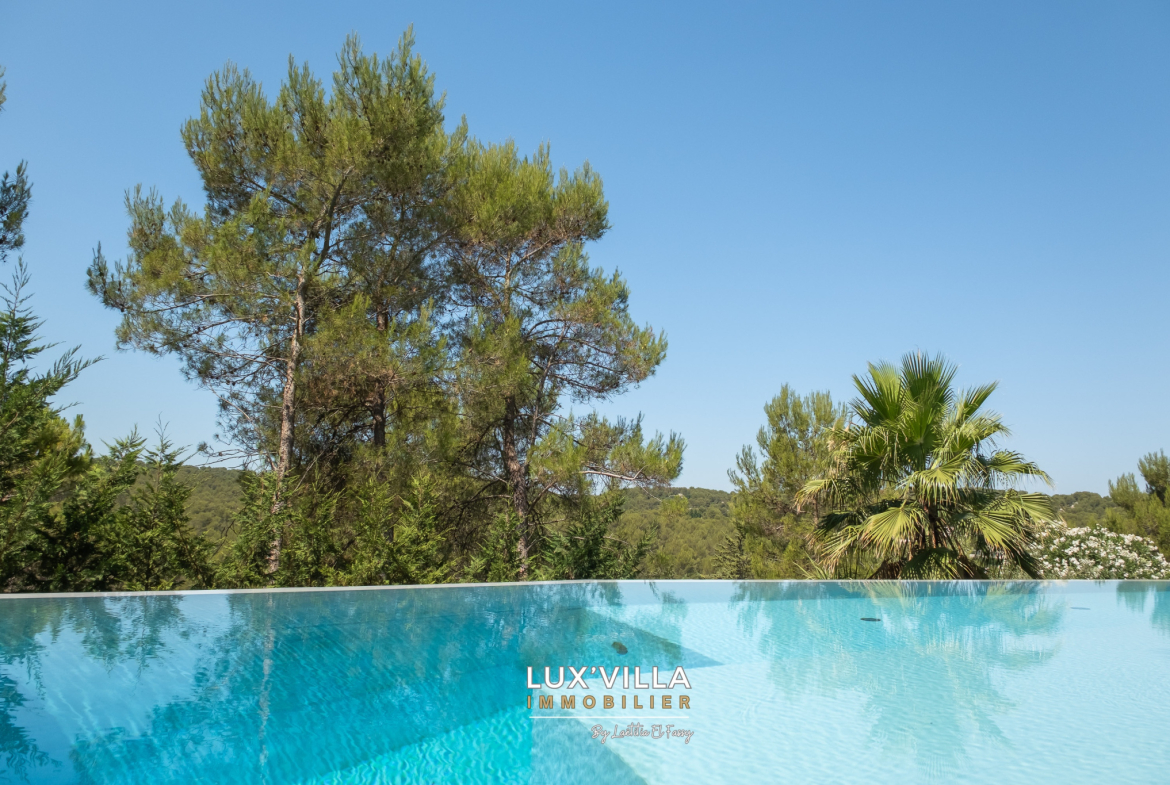 Annexes : cuisine d’été, pool house avec WC, lavabo et douche, garage pour 3 véhicules, buanderie et cave à vin.