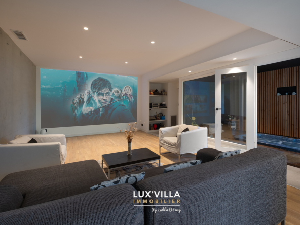 Rez de jardin : salle de sport, salle de cinéma, jacuzzi 4 places et patio arboré intérieur.