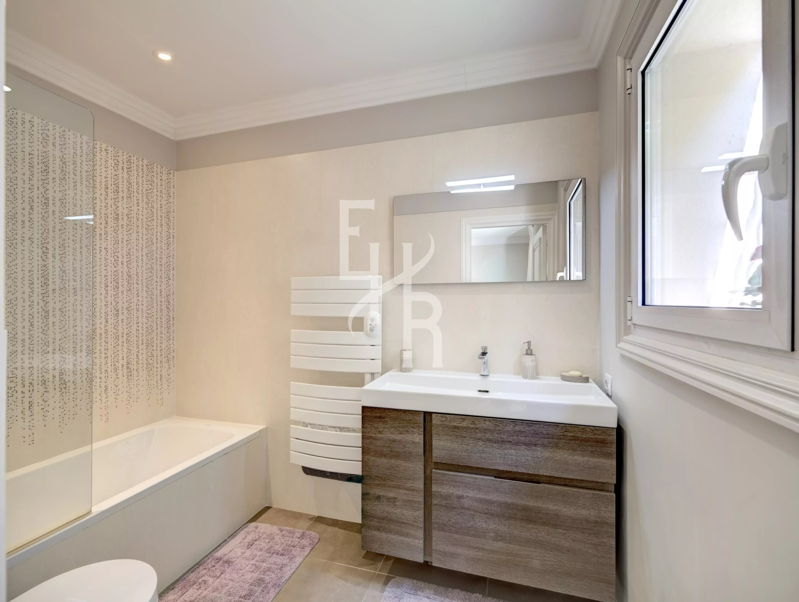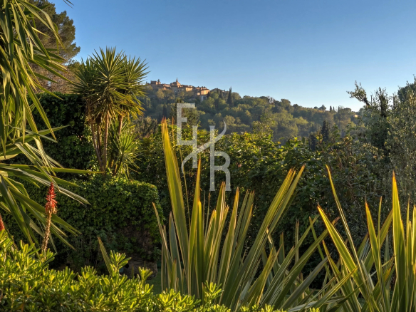 Le jardin, entièrement paysagé sur environ 3 800 m², est agrémenté d’essences méditerranéennes et offre une magnifique vue dégagée sur le village de Mougins.