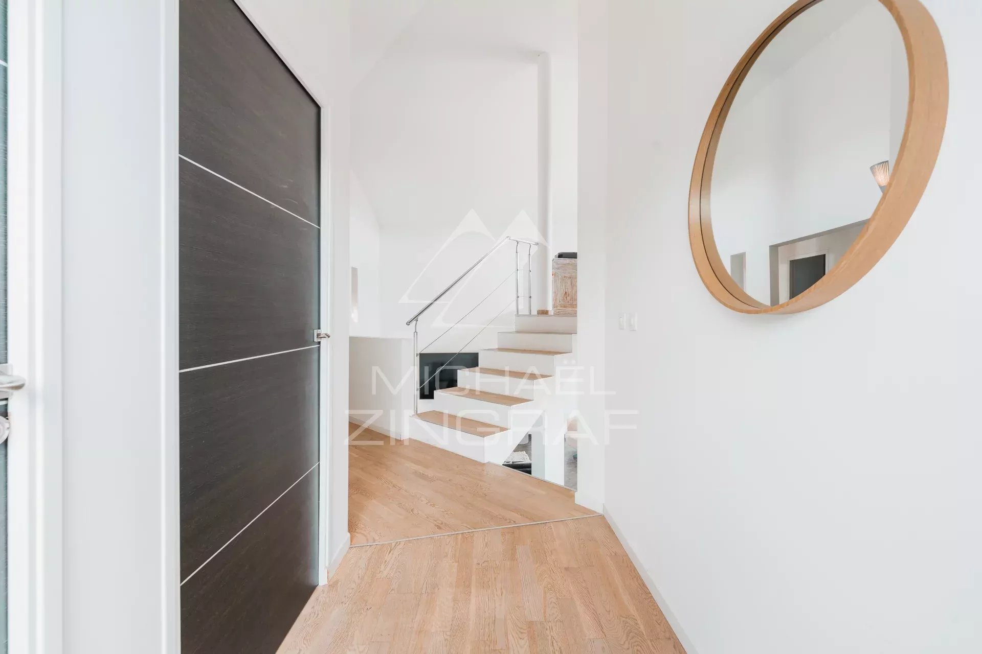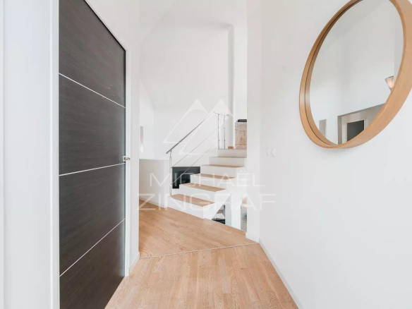 Dès l’entrée, le charme opère, au premier niveau profitez d’un vaste salon ouvert baigné de lumière, sublimé par un plafond cathédrale majestueux, offre une sensation d’espace et de raffinement inégalé. La cuisine ouverte, haut de gamme César, véritable chef-d’œuvre de design et de fonctionnalité, ravira les amateurs de gastronomie. Un espace dressing discret viendra compléter cet espace de vie.