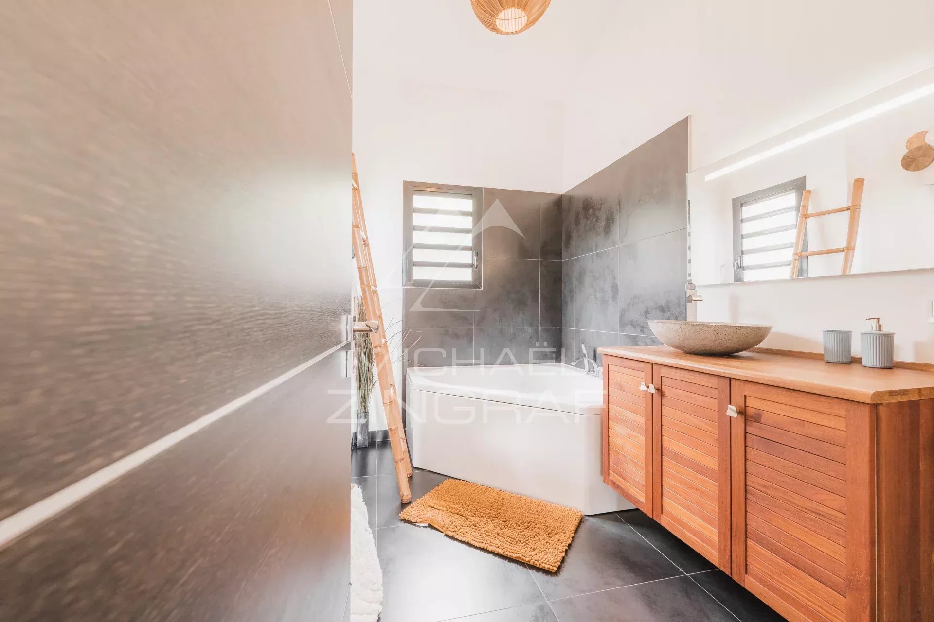 Cette propriété incarne un mode de vie où luxe et nature ne font qu’un. Son cadre enchanteur, ses prestations haut de gamme et son emplacement privilégié qui permettent de profiter des sentiers de balade et d’une proximité à toutes les commodités. Accès au voie rapide en seulement 2 minutes, à 5 minutes du centre commercial de Portail Saint Leu.