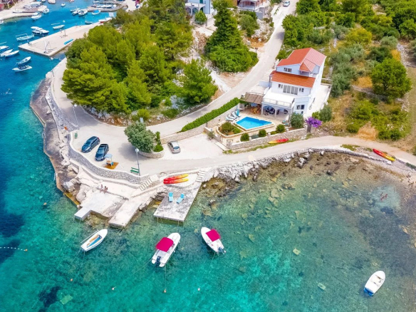 Dans la petite baie, cachée de l’agitation du centre se trouve cette magnifique maison semi-traditionnelle sur l’île de Korčula. Construit en 2013. cette maison est à seulement 18 kilomètres du centre-ville, parfaite pour ceux qui recherchent un type de propriété plus privé et convient à ceux qui recherchent une maison familiale ou qui veulent juste un peu de paix et de tranquillité. la zone. Une caractéristique très pratique est le fait que la mer est littéralement dans votre jardin ! À seulement quelques pas de l’entrée de la maison, il y a une petite baie avec des bateaux de pêcheurs et une merveilleuse eau vert émeraude prête à être plongée ! Vue imprenable sur la mer servie depuis votre propre terrasse ! Cette eau cristalline et cette nature intacte rendent vraiment cet endroit unique et unique. Vous aurez vraiment l’impression de vivre l’histoire de rêve de votre propre Korčula ! Cette maison de 3 étages et 460 m2 est entièrement équipée avec 7 chambres, 4 salles de bains, plusieurs balcons et un espace extérieur spacieux. Il dispose également d’un charmant petit jardin avec du matériel végétal local comme des palmiers et des buissons de lavande ! Il y a un grill en pierre sur la terrasse du rez-de-chaussée juste à côté de la piscine pour les rassemblements sociaux. Le salon spacieux et l’intérieur général de la maison sont assez modernes et élégants, entièrement décorés avec des appareils élégants et modernes. Un bonus supplémentaire de cette maison est une salle de jeux supplémentaire avec un billard vous assurant d’avoir toujours assez d’espace pour vous divertir. L’île d’émeraude de la Croatie, connue sous le nom de Korčula, est située au cœur de la zone maritime de la Croatie. Véritable joyau « émeraude » de la mer Adriatique, c’est la sixième plus grande île de Croatie. Pratiquement situé entre d’autres géants insulaires comme Brač, Hvar, Mljet et la péninsule de Pelječac, ce qui en fait sans aucun doute un endroit de luxe ! Korčula est connue pour sa forêt dense, ses belles plages de sable, ses vignobles riches, ses oliveraies et ses petits villages charmants. Il existe de nombreuses possibilités de visites à Korčula, en particulier dans la vieille ville qui possède un énorme patrimoine historique et culturel. Plusieurs fois comparée à Dubrovnik, Korčula a une architecture similaire et est souvent appelée “Mini Dubrovnik”. Un lieu culturel riche, rempli d’histoire, de beauté et de charme, l’île de Korčula offre une variété d’activités et de traditions uniques, toutes situées dans le superbe mer Adriatique et bénie par l’excellent climat méditerranéen. La ville est inscrite sur la liste indicative de l’UNESCO et fait partie intégrante de l’histoire de l’île. Outre toutes les caractéristiques intéressantes mentionnées précédemment, selon certains biographes, Korčula est également connue pour être le lieu de naissance du célèbre marchand et voyageur Marco Polo.