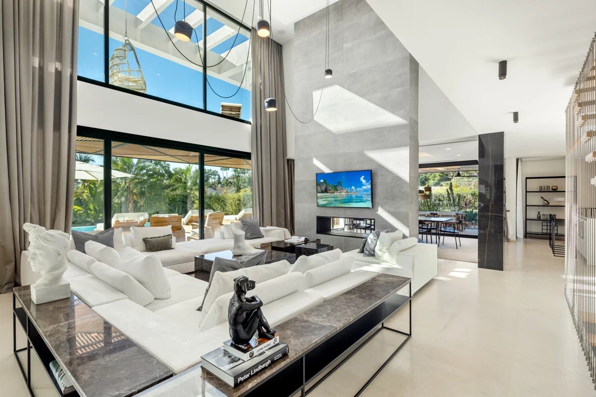 L’intérieur de la Villa est tout aussi impressionnant, avec un design impeccable évident dans tout l’espace de vie décloisonné et homogène doté de hauts plafonds.
