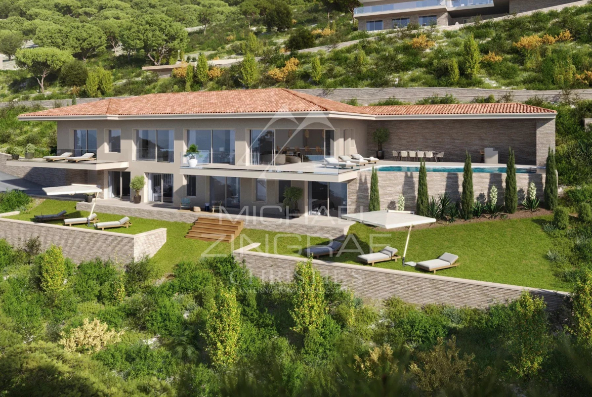Elle se distingue par un vaste espace de vie lumineux de plus de 160 m² avec cuisine ouverte, conçu pour maximiser la vue dégagée. Cinq suites, chacune avec salle de bains privative, complètent les espaces nuit, dont une somptueuse chambre de maître avec dressing et terrasse privée offrant une vue mer.