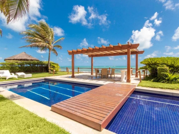 💎 POURQUOI INVESTIR ICI — Une villa de 490 m² avec finitions haut de gamme — pierre de Santome, dressings en marbre, céramiques Sérgio Brena — vue directe sur l’océan, piscine avec plage humide et maison de gardien, à Porto Mirim : ce type de bien est rare sur le marché immobilier côtier du nord-est brésilien. La région bénéficie d’un développement touristique soutenu, d’une accessibilité internationale via l’aéroport de Natal et d’un coût d’acquisition très compétitif comparé aux marchés côtiers équivalents d’Europe ou des Caraïbes.
