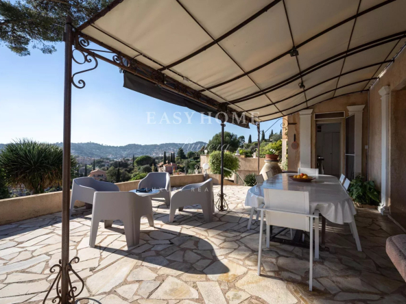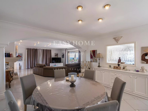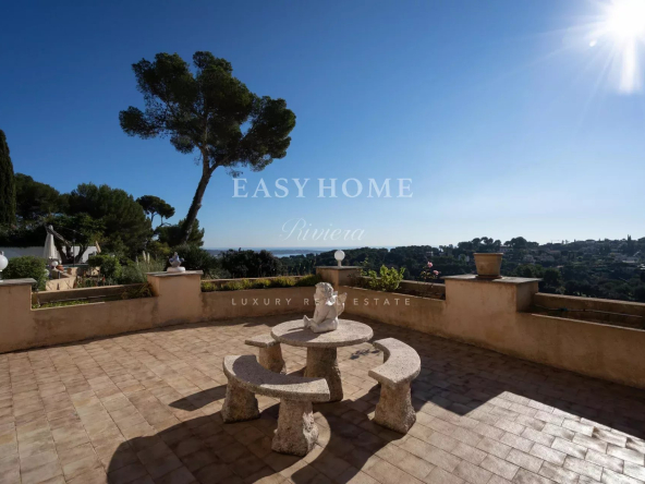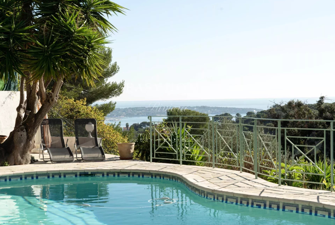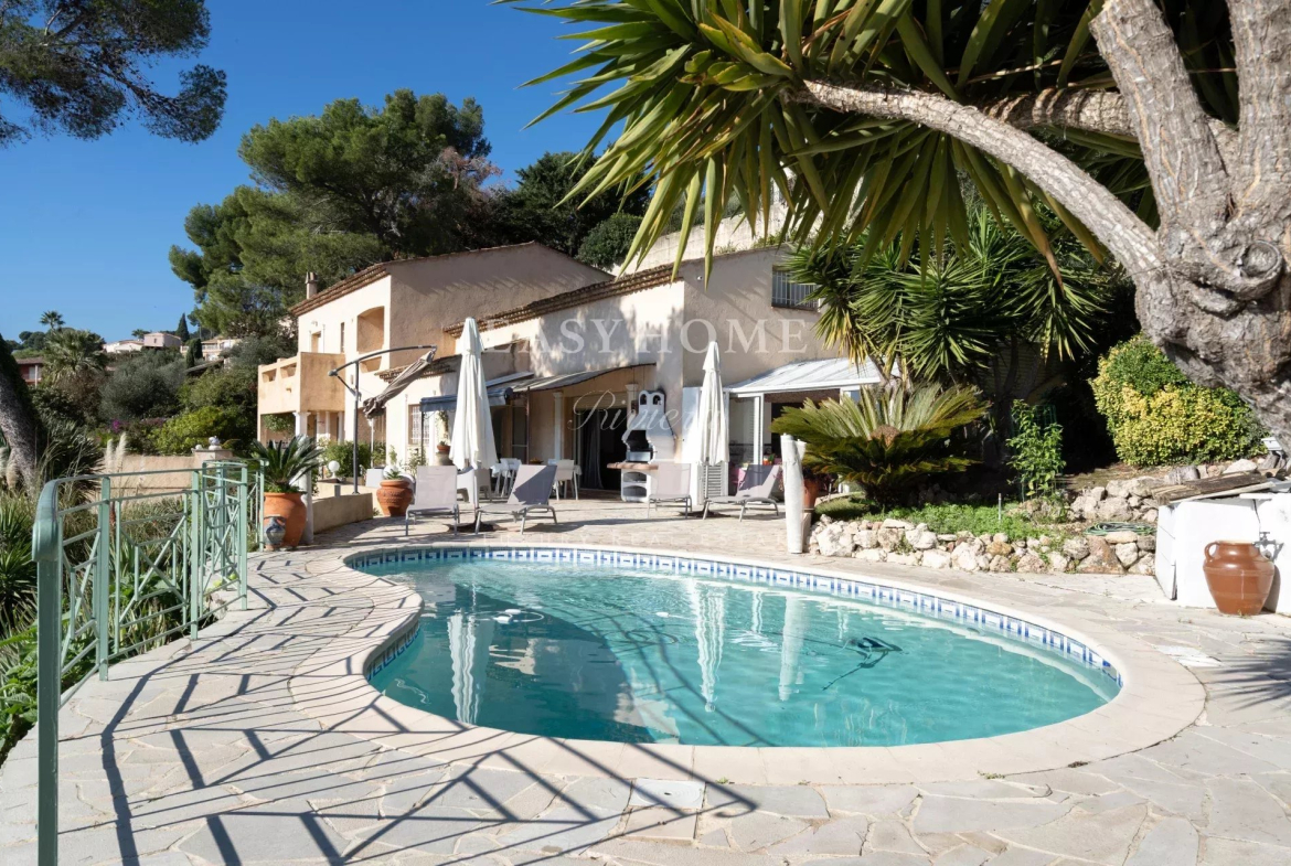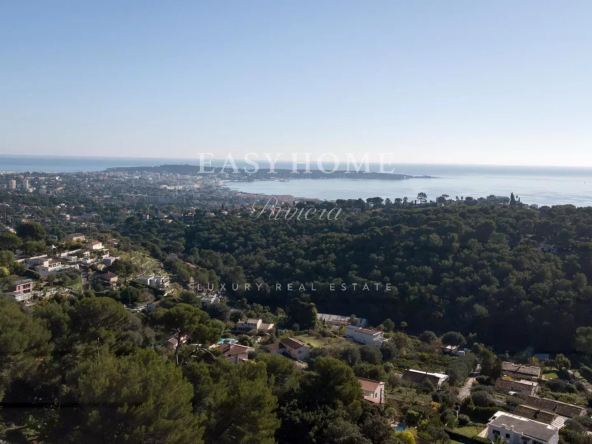 Exclusivité, Achat/Vente villa de qualité située à 10 minutes de Cannes, dans un secteur calme et résidentiel de golfe juan, vous offrant une vue mer sur le Cap d’Antibes et la baie de Juan les pins.