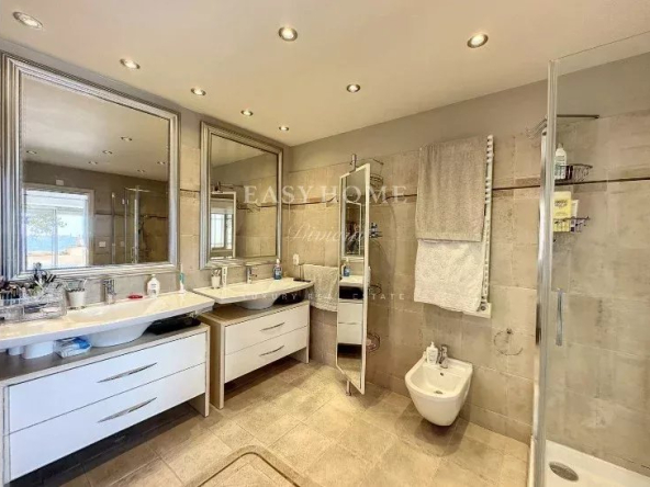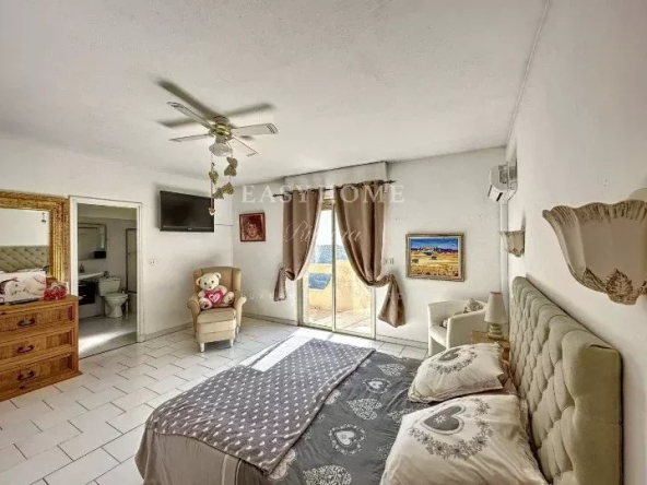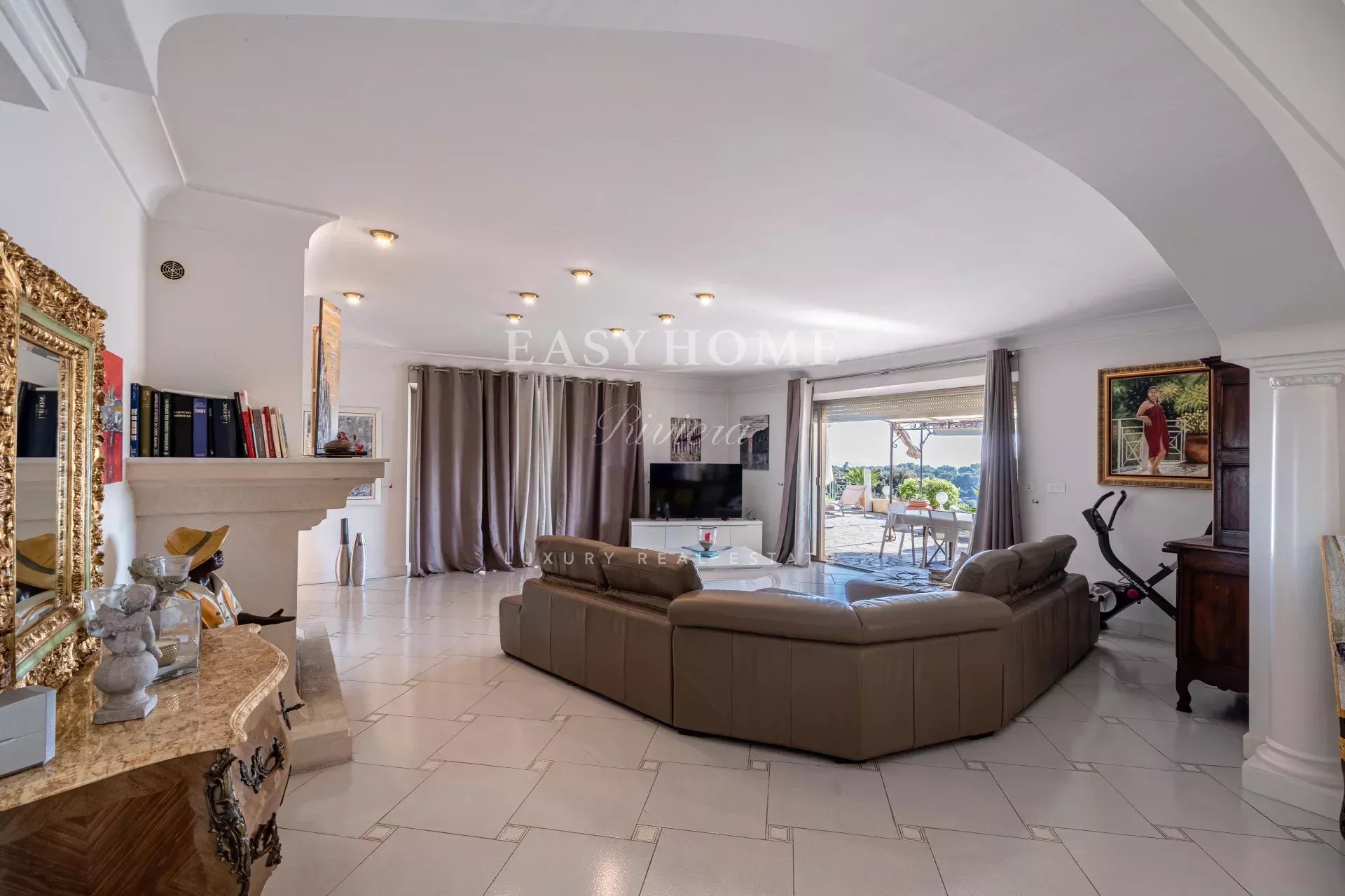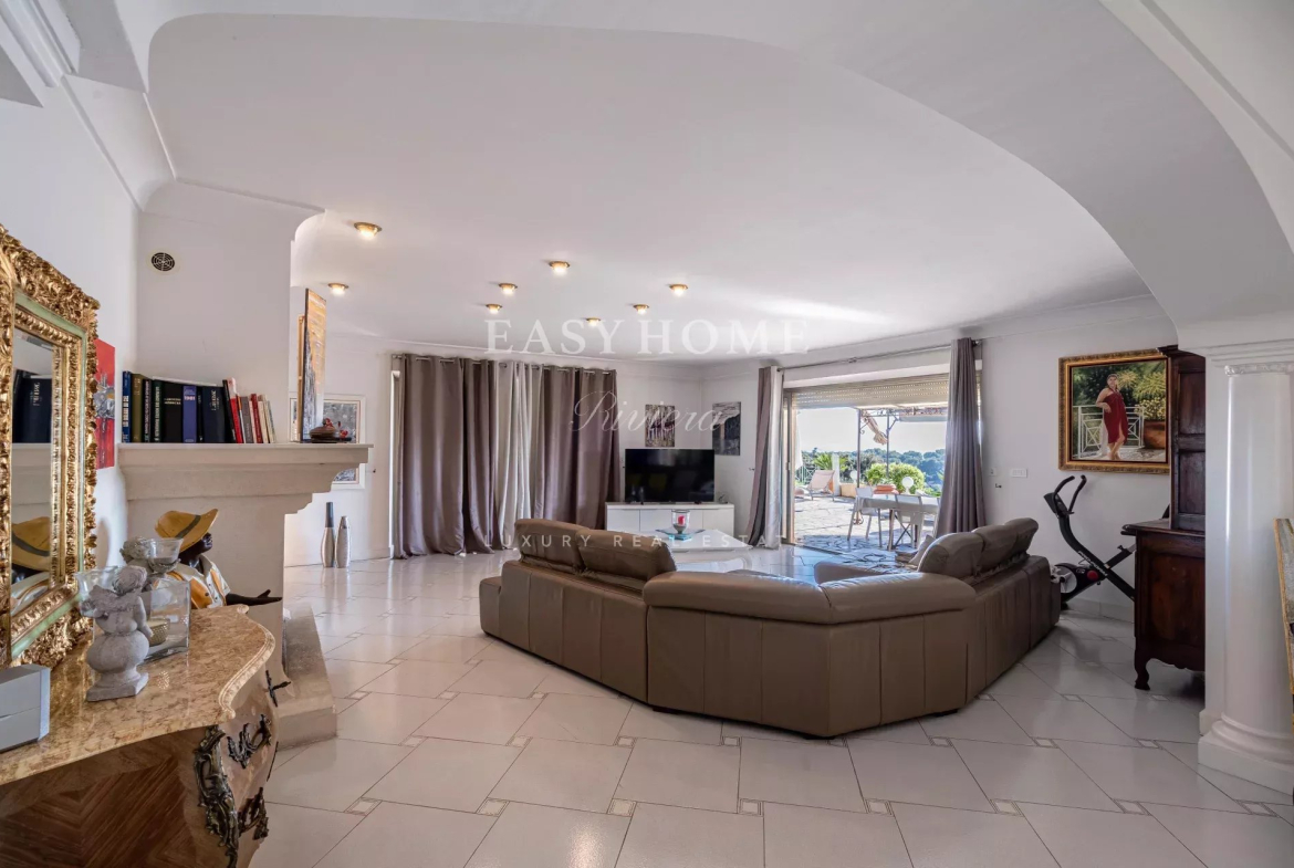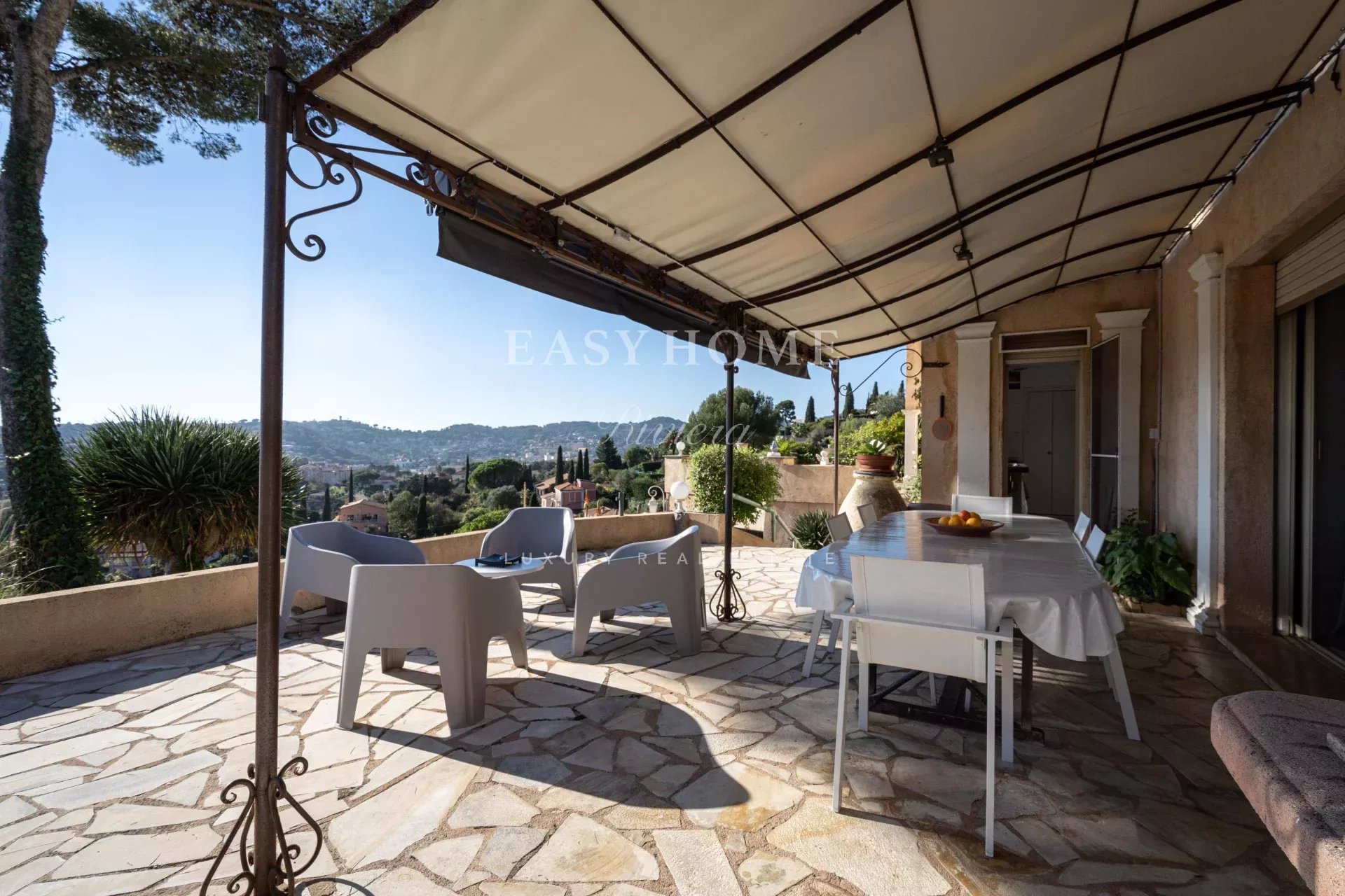 Exclusivité, Achat/Vente villa de qualité située à 10 minutes de Cannes, dans un secteur calme et résidentiel de golfe juan, vous offrant une vue mer sur le Cap d’Antibes et la baie de Juan les pins.