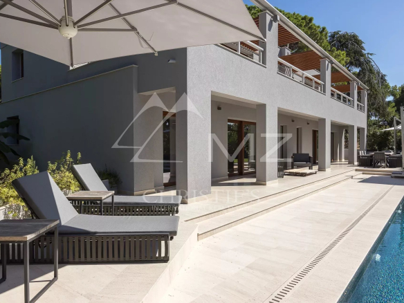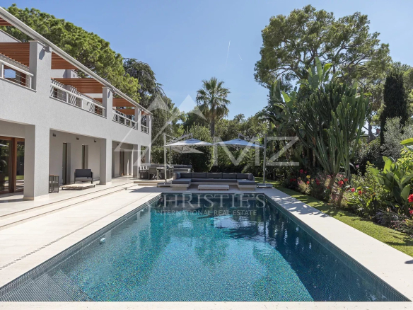 Cette villa de prestige est située dans le quartier résidentiel très calme et recherché du Cap-Ferrat, à proximité immédiate du célèbre Grand Hôtel Four Seasons. Elle se compose de trois niveaux, avec un grand séjour/salle à manger doté d’une cheminée, qui s’ouvre sur une vaste terrasse confortable. La villa dispose de 4 chambres, chacune avec sa propre salle de bains ou douche, ainsi qu’un studio indépendant, une buanderie, une salle de sport, un sauna et une cave à vin. Un grand garage pouvant accueillir jusqu’à 3 voitures est également à disposition. Le jardin parfaitement plat et utilisable s’étend sur une superficie de 1840 m². Depuis l’étage, une jolie vue sur la mer est visible. L’exposition Sud et Ouest permet un ensoleillement idéal. Enfin, une belle piscine se trouve dans le prolongement de la terrasse du salon. Cette maison de prestige est en parfait état et ne présente aucune surprise.