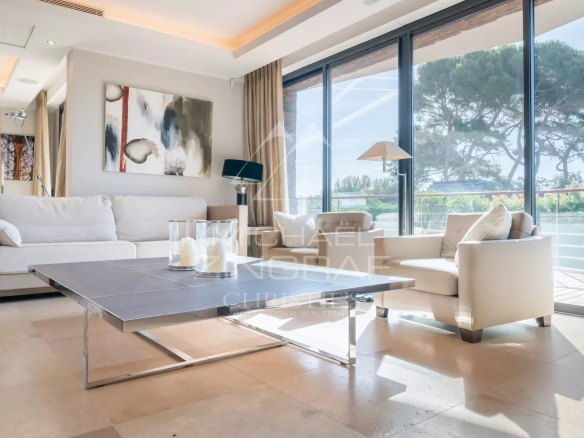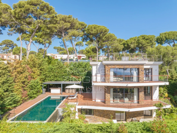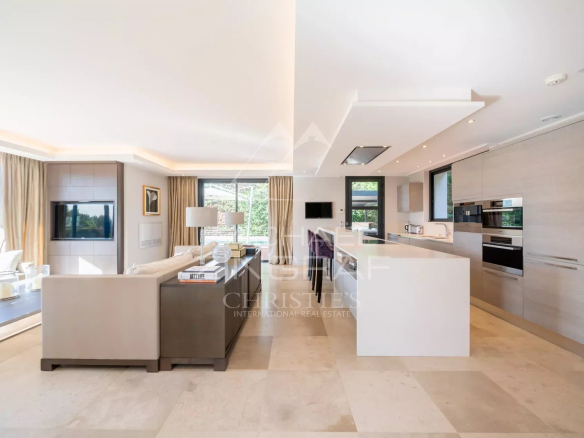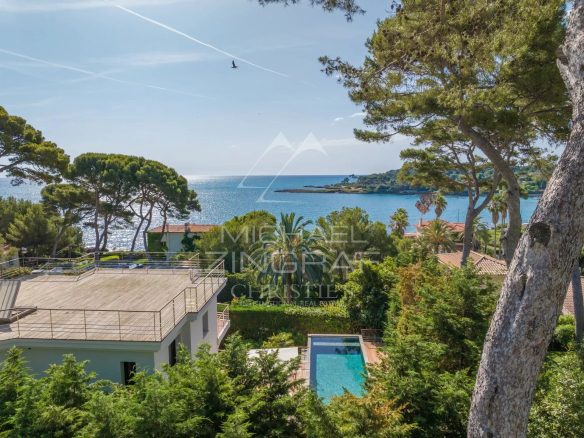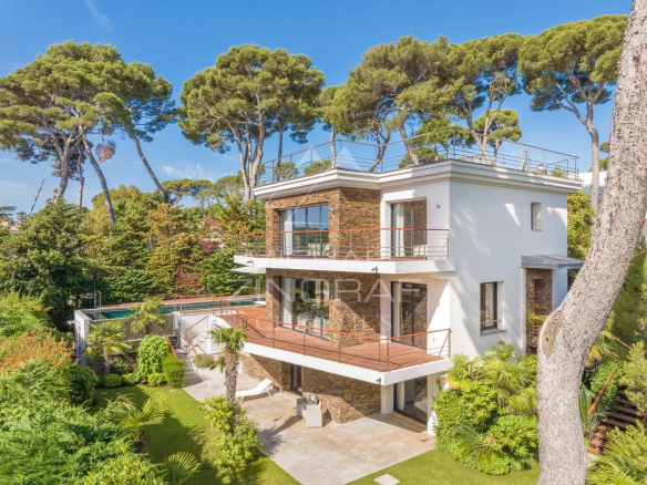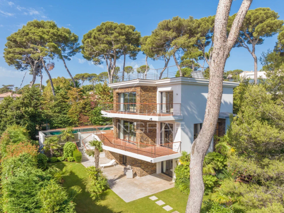 Située en deuxième ligne, dans une impasse, à l’écart de la circulation, cette villa de 5 chambres, 5 salles de bains en suite, exposée plein sud, est à seulement quelques minutes à pied des plages de la Garoupe.