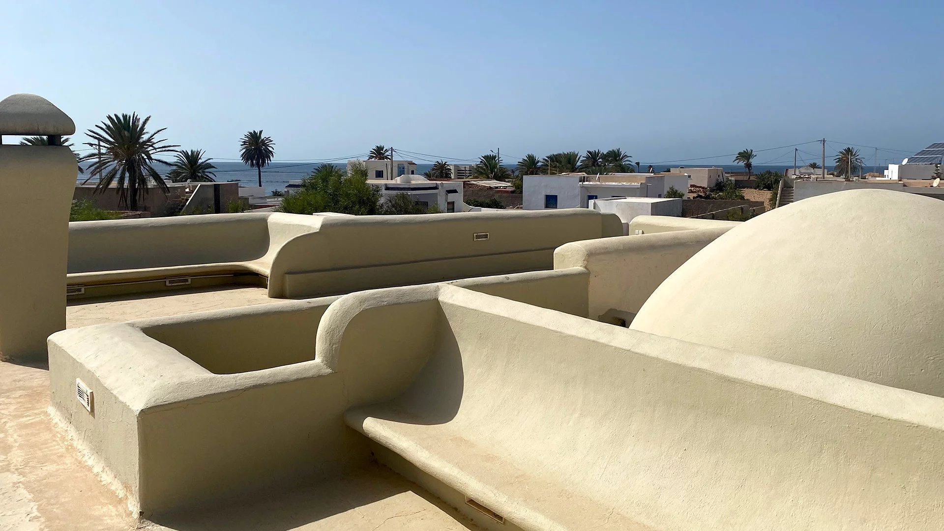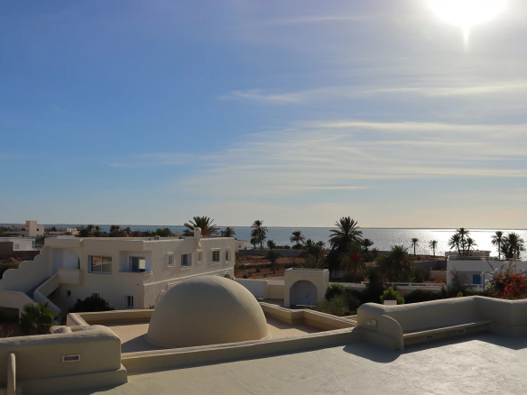✨ DOMAINE PIEDS DANS L’EAU — BOUNOUMA, ÎLES KERKENNAH, SFAX, TUNISIE — À la pointe nord-ouest de l’île Chergui, dans le village authentique de Bounouma, ce domaine exceptionnel incarne l’art de vivre méditerranéen dans ce qu’il a de plus rare et de plus sincère. Posé à 30 mètres d’une plage de sable fin aux eaux turquoise d’une limpidité absolue, il se déploie sur plus de 5 000 m² de terrain paysager, subtil mélange d’architecture traditionnelle kerkennienne et d’équipements contemporains d’excellence.