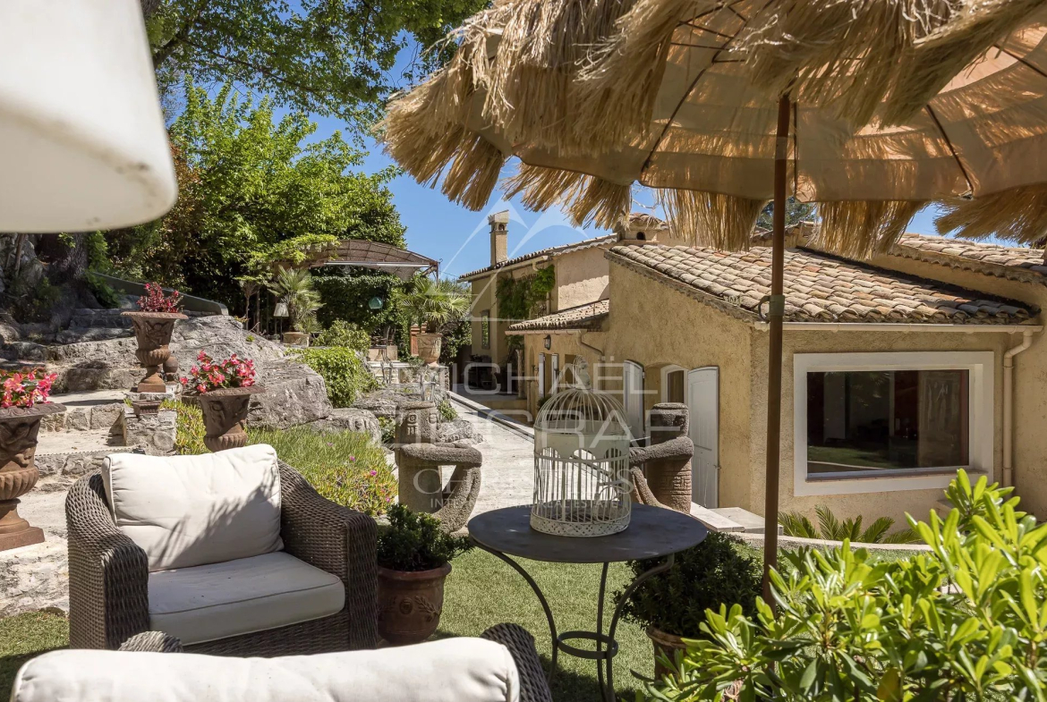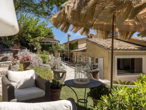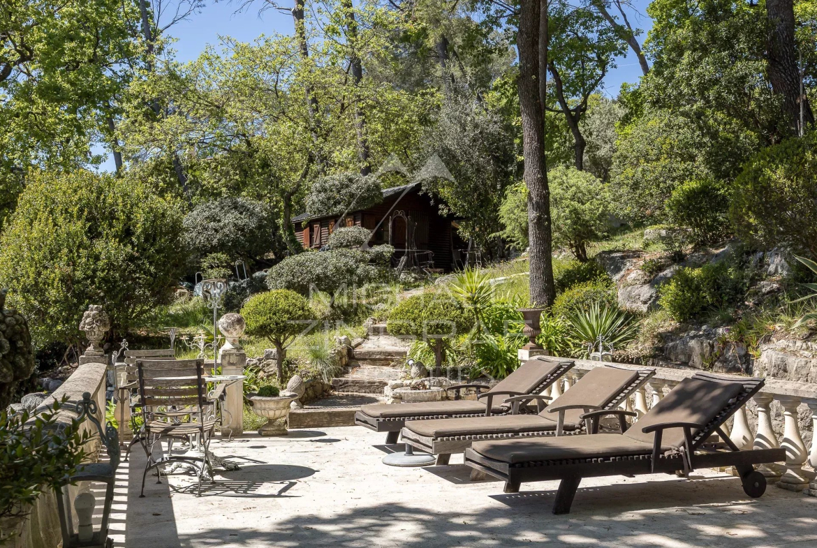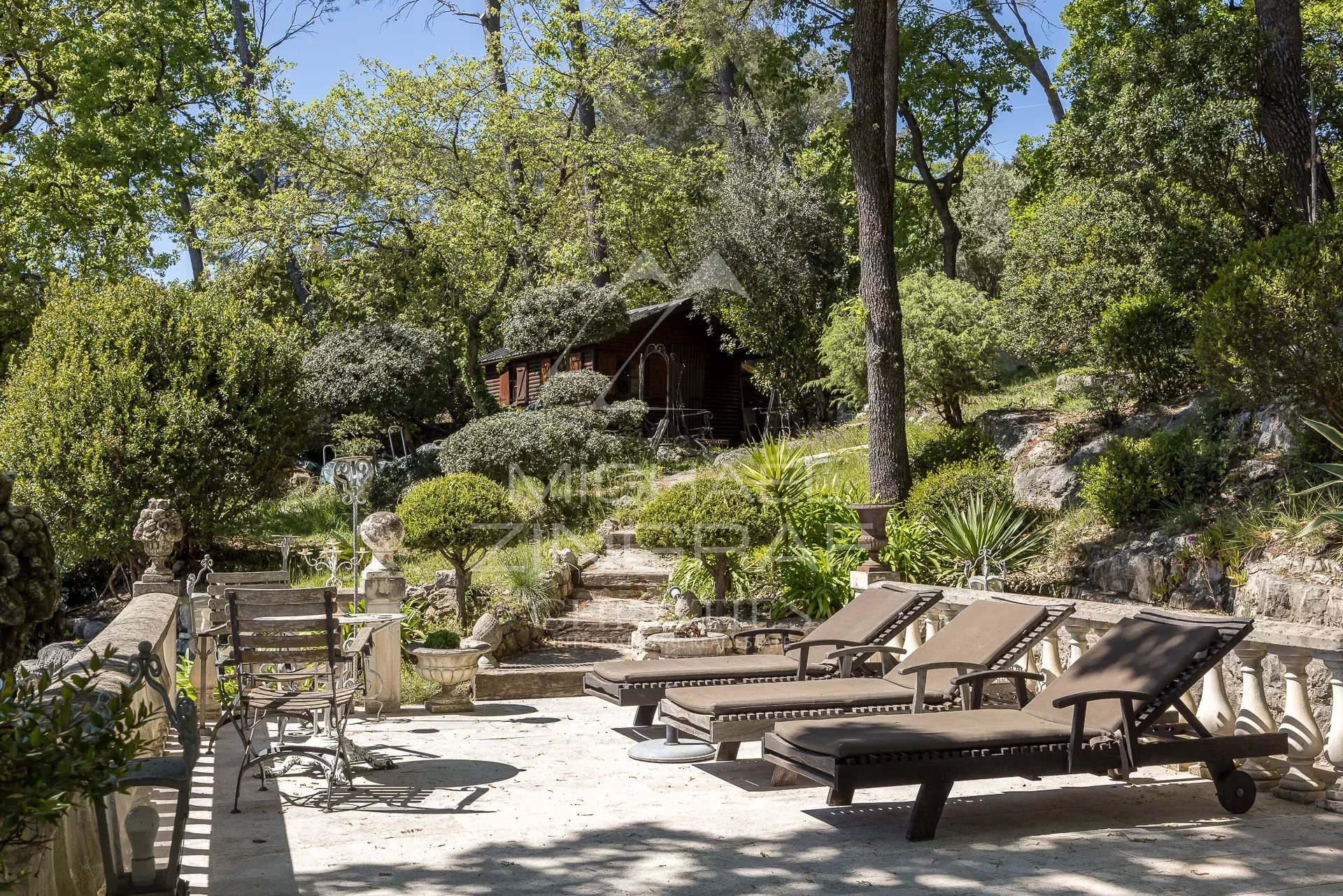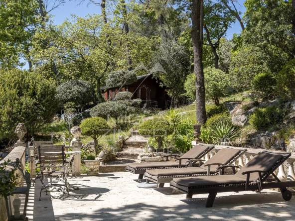Co-Exclusivité : Située en position dominante, à pied des commerces, cette villa provençale construite par un architecte allie charme, confort et authenticité. Solidement bâtie, elle est entourée d’un jardin paysager au charme méditerranéen, sur un terrain d’environ 3 400 m², piscinable.