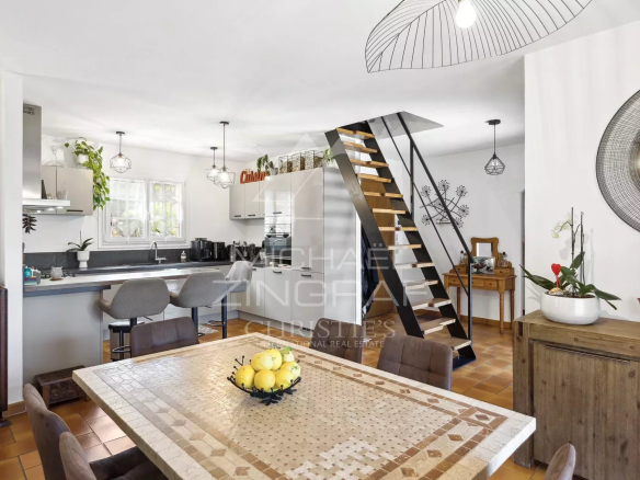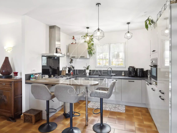 Ce bien aux lignes authentiques et à l’entretien irréprochable séduira tant en résidence principale qu’en maison de vacances, à proximité immédiate des écoles internationales, des commerces, et à moins de 30 minutes de l’aéroport de Nice.