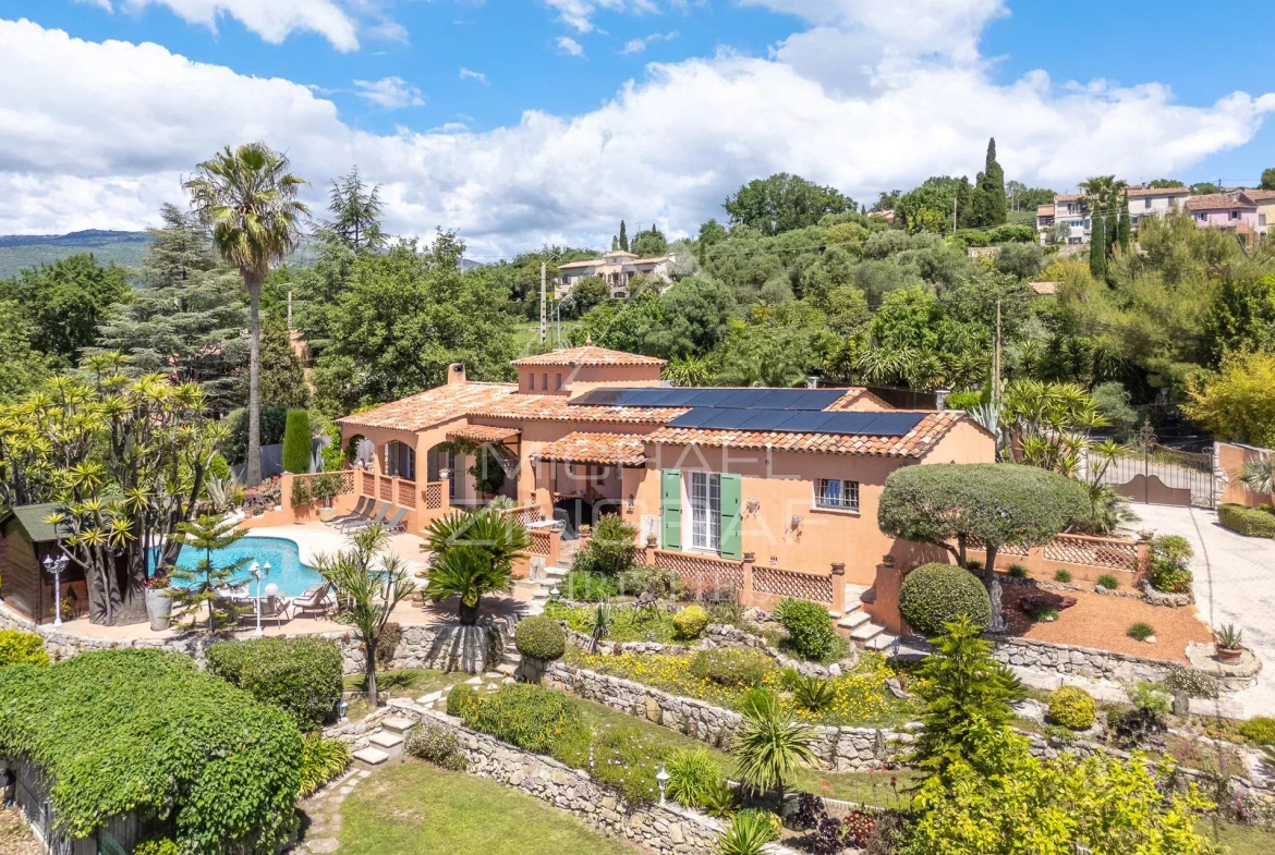 Idéalement située au sein d’un environnement résidentiel calme et prisé, à seulement quelques minutes des villages de Valbonne et Opio ainsi que des golfs renommés de la région, cette charmante villa provençale bénéficie d’un cadre naturel privilégié et d’une vue mer latérale dégagée.