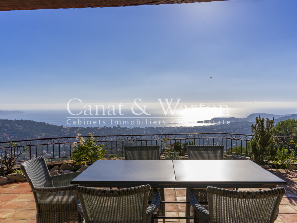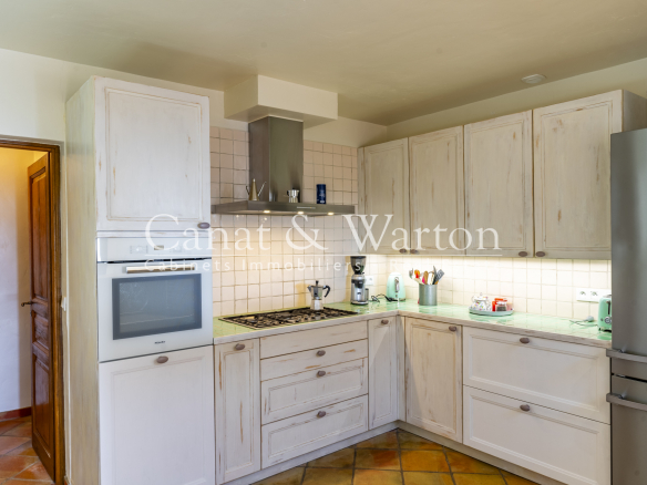 CANAT & WARTON Golfe de Saint Tropez, présente cette propriété avec piscine & vue mer exceptionnelle à Cavalaire. Idéalement située dans une impasse au calme, cette villa de charme style provençale d’environ 175 m2 de plain-pied sur un terrain de 1 699 m2 offre une vue mer spéctaculaire à 180 degrés. Elle est composée par un hall d’entrée, un spacieux séjour avec une belle cheminée, une salle à manger, une cuisine séparée toute équipée, une chambre de maître avec une salle de douche, 3 suites parentales, une chambre et une belle cave à vin en voûtée. Larges terrasses ensoleillées. Piscine avec son pool-house entièrement équipé. Un grand garage pour 2 voitures vient compléter ce bien. Rebecca SCHMITT (EI), agent commerciale RSAC 440537033 auprès de l’agence CANAT & WARTON Golfe de Saint Tropez est à votre disposition au 07 88 48 30 57. WE SPEAK ENGLISH-WIR SPRECHEN DEUTSCH. Les informations sur les risques auxquels ce bien est exposé sont disponibles sur le site Géorisques www.georisques.gouv.fr