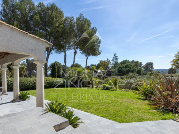 Située dans l’un des quartiers les plus recherchés de Biot, au calme absolu et en environnement résidentiel, cette villa rénovée de 376 m² s’implante sur un terrain paysager d’environ 2 200 m², avec une exposition plein sud et une vue dégagée sur les collines.