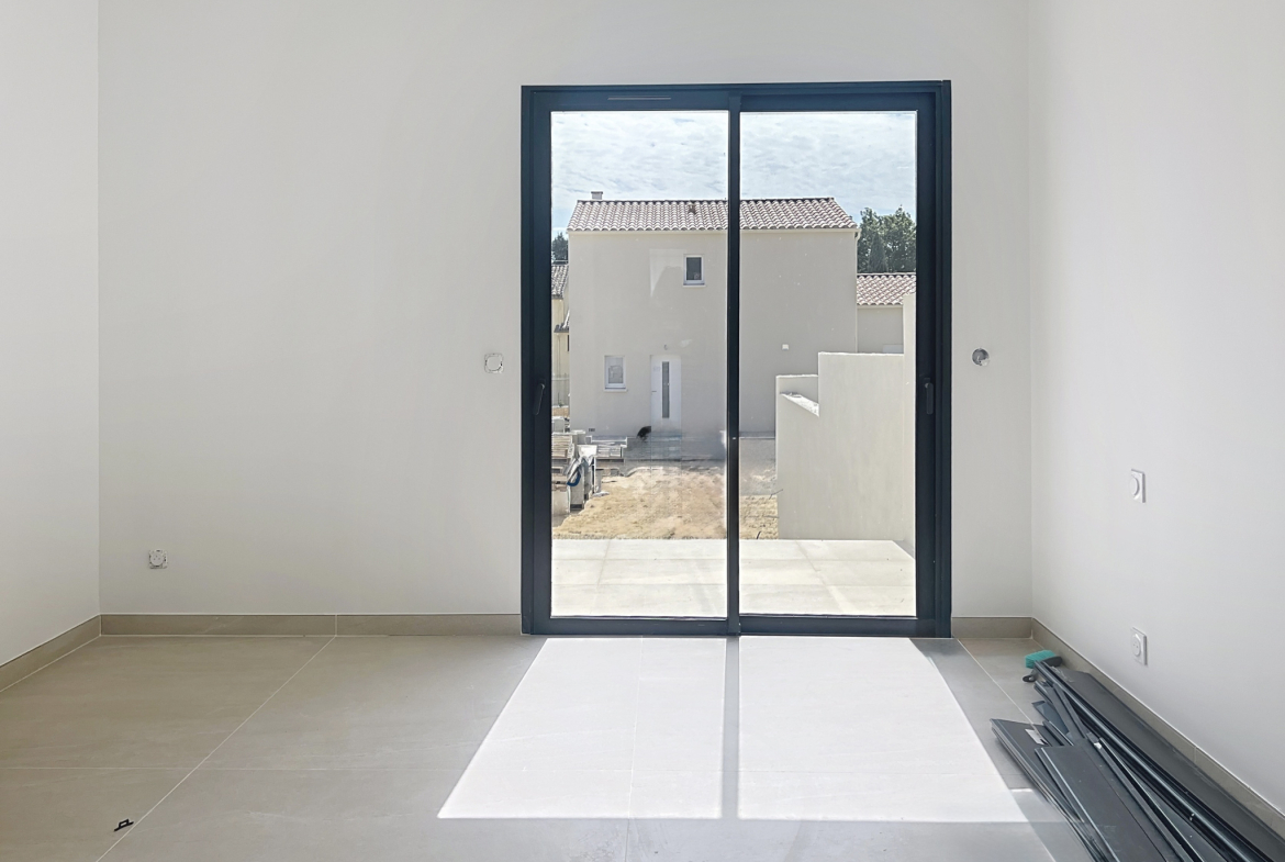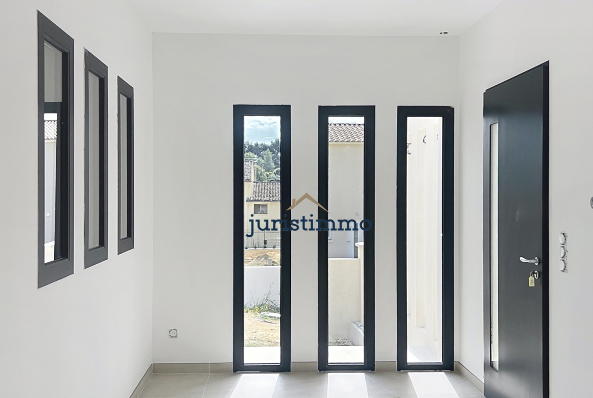 À Vaison-la-Romaine, en lisière du centre-ville, se niche une villa neuve de 156 m2 aux lignes contemporaines, actuellement en cours d’achèvement (livraison prévue mi octobre ). Implantée sur un terrain de 500 m2, en position dominante, à l’extrémité d’un lotissement confidentiel, elle offre une vue panoramique sur le Mont Ventoux et les reliefs environnants. Cette maison, orientée plein Sud, baignée de lumière a été pensée avec soin jusque dans les moindres détails pour offrir un intérieur élégant et fonctionnel.