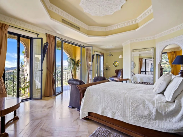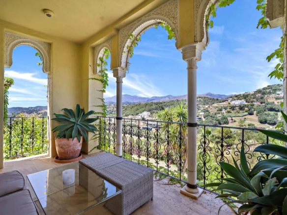Cette maison exceptionnelle allie l’attrait du style andalou au confort contemporain et s’inspire du fort mauresque du XIIe siècle qui orne les montagnes derrière le parcours de golf.