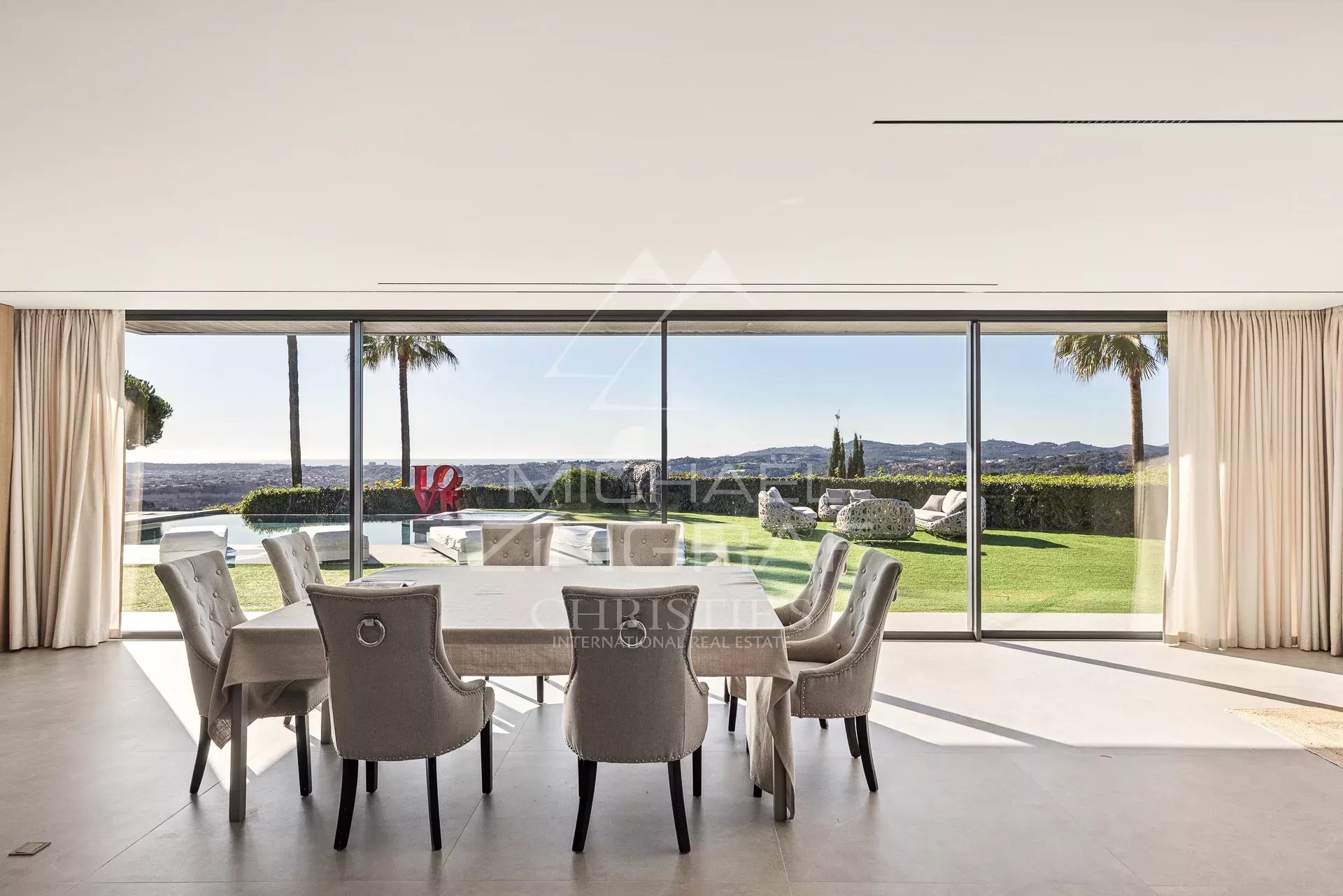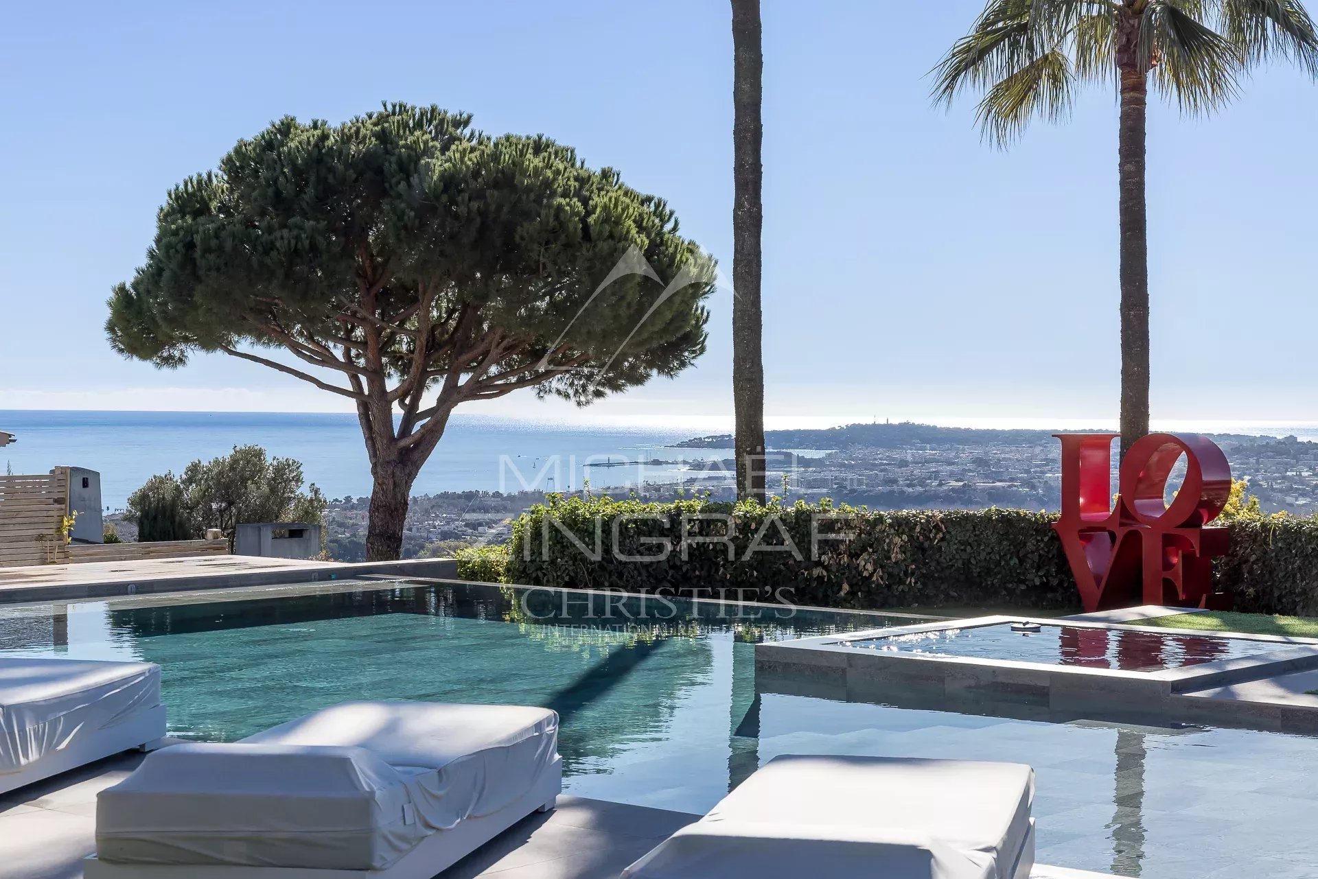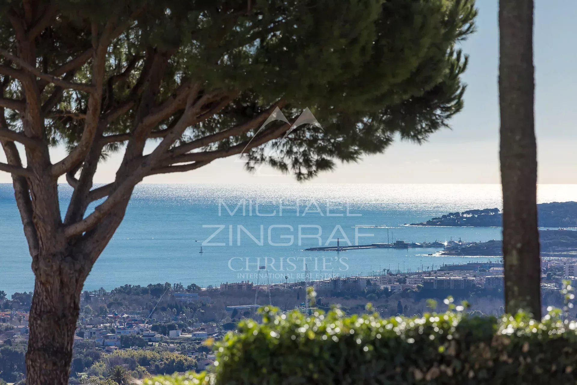 Au cœur de l’un des domaines les plus prisés de la Côte d’Azur, dans un environnement de calme absolu et en position dominante, cette superbe villa d’environ 400 m², exposée sud-ouest, bénéficie d’un panorama exceptionnel sur le Cap d’Antibes, la mer et les collines environnantes. Elle est agrémentée d’une piscine et d’un jacuzzi.