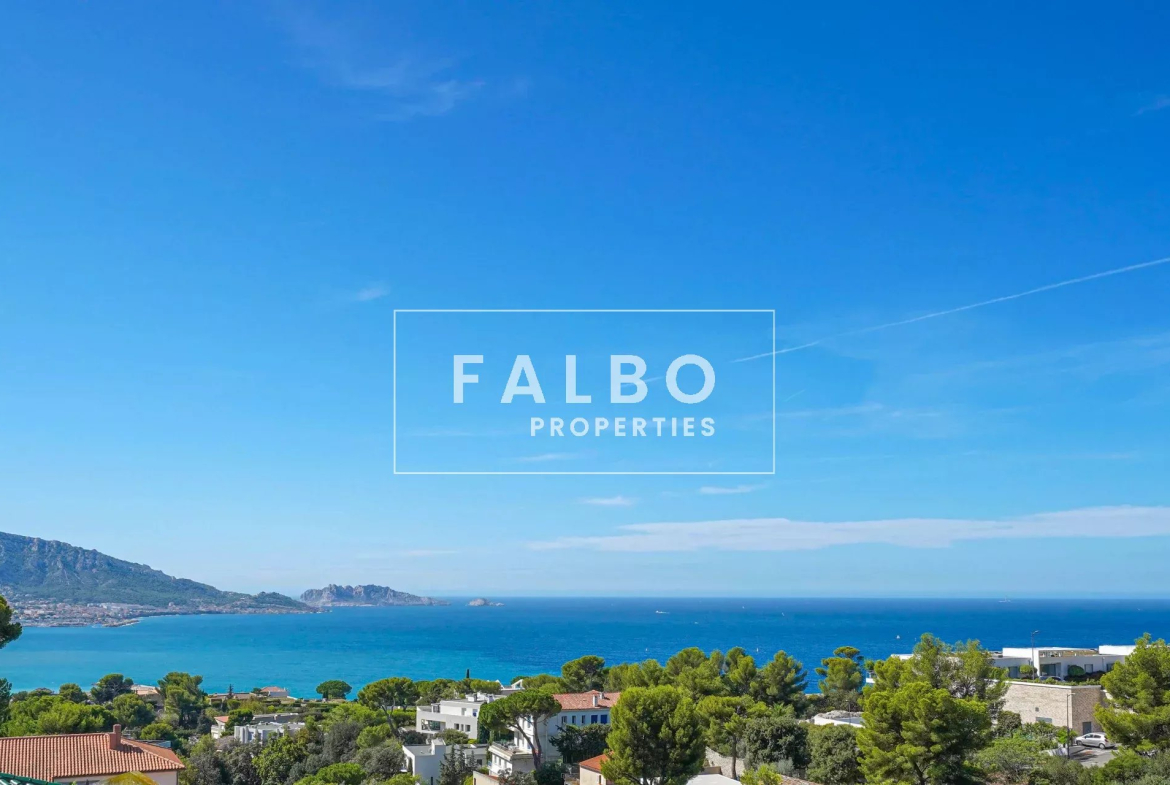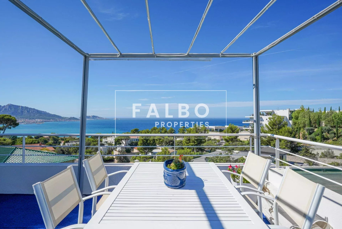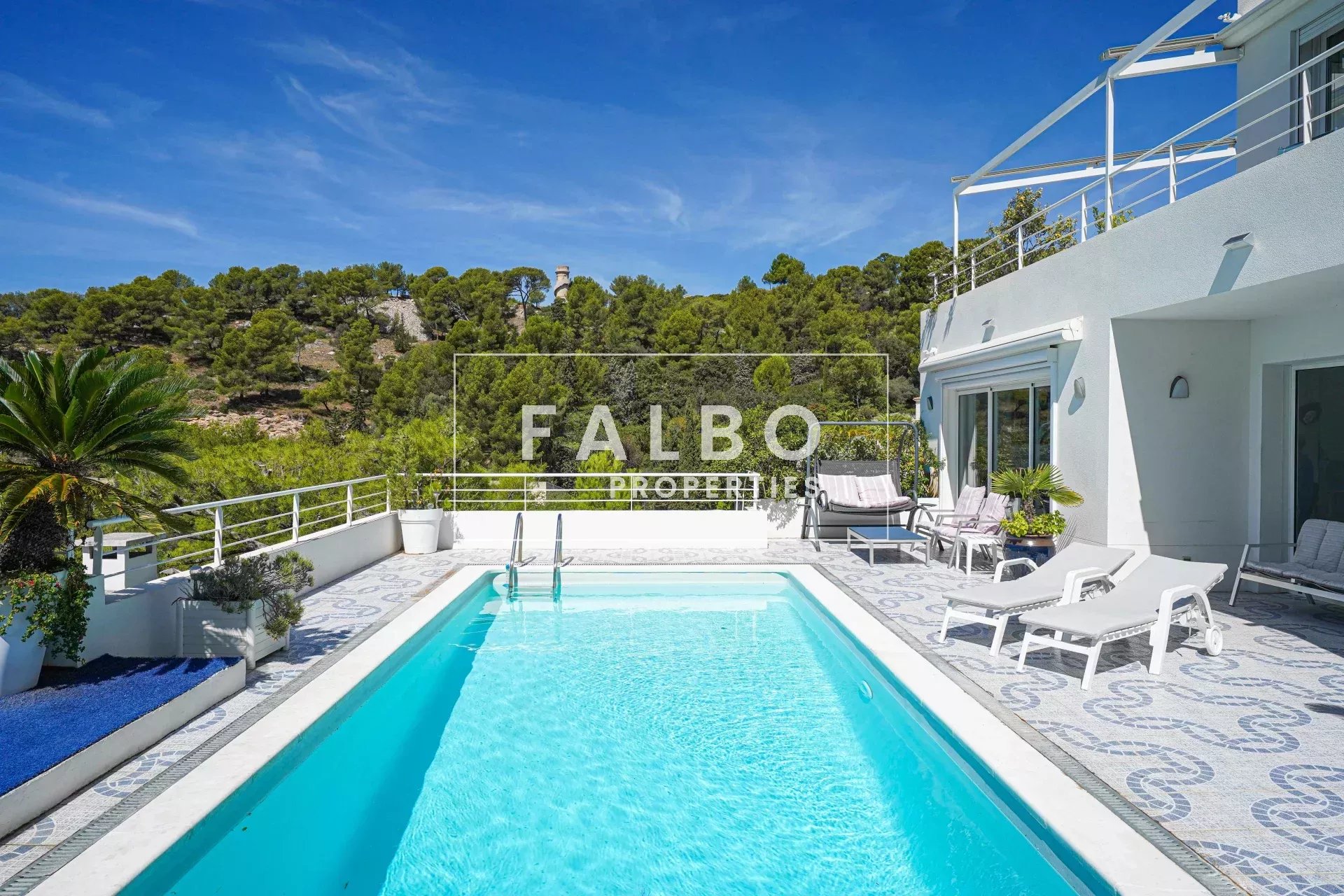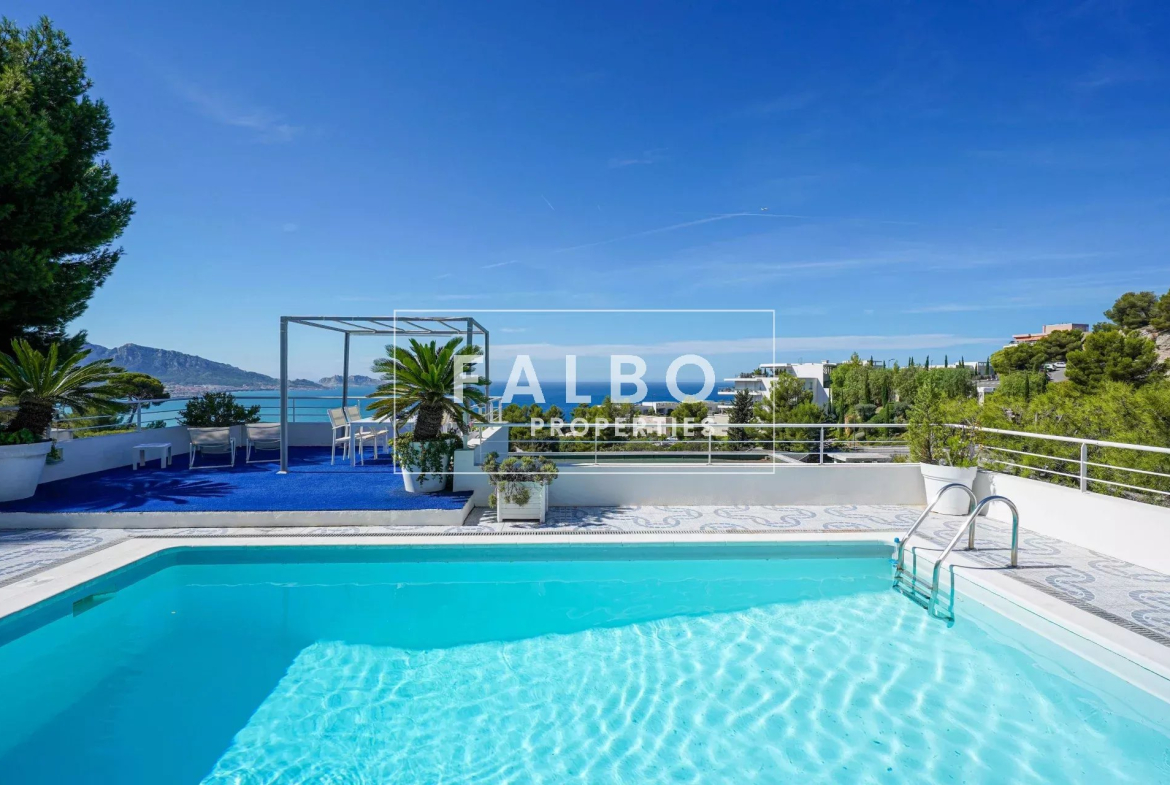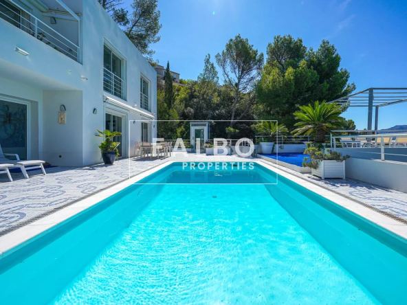 Superbe vue mer au sein d’un parc sécurisé de prestige du Roucas Blanc, non loin de la corniche Kennedy, des commerces et plages du Prado, sur une parcelle de 1000m² environ en hauteur, belle maison contemporaine.