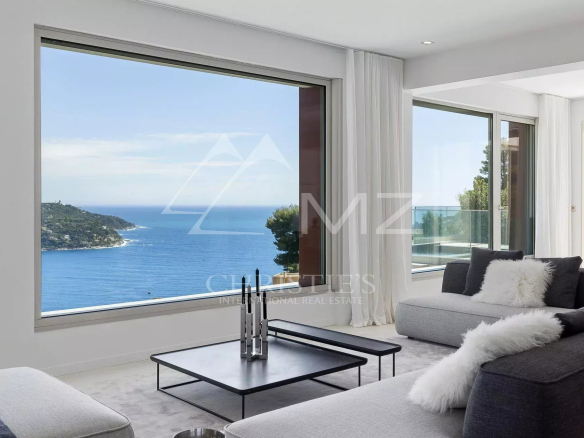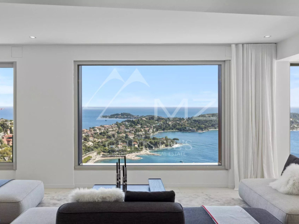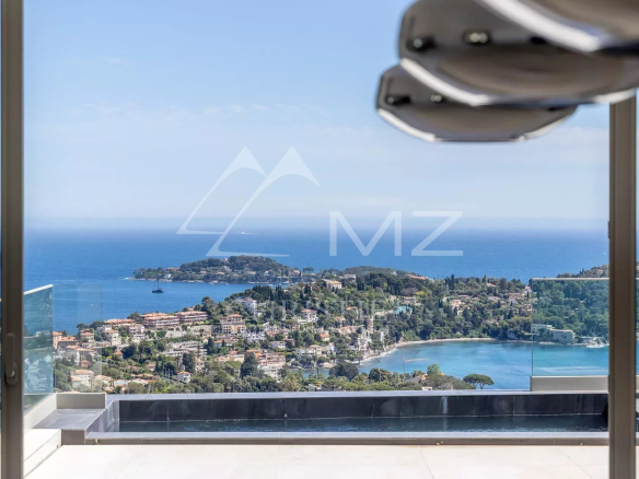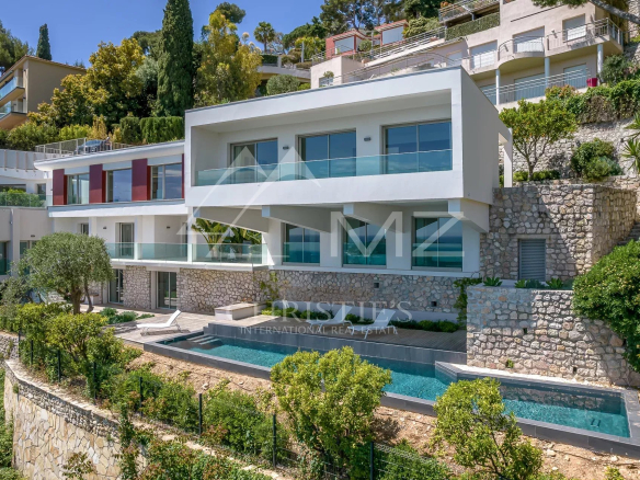 Au sein d’un petit domain privé prestigieux au calme absolu, cette vaste propriété d’environ 460 m2 vient d’être rénovée dans un style contemporain élégant avec des prestations très luxueuses par Jean-Paul Gomis, un célèbre architecte niçois. A proximité immédiate des commerces et à une dizaine de minutes seulement des plages cette villa offre une vue panoramique exceptionnelle sur la rade de Villefranche et le Cap Ferrat. Tous les volumes de cette construction sont surdimensionnés : l’immense pièce de réception baignée de lumière se prolonge d’une cuisine moderne avec ilot central. Les 5 chambres avec dressing et salle de bain en suite sont également immenses. Sauna, Jacuzzi extérieur, salle de sport, salle de relaxation complètent l’ensemble. Ascenseur intérieur desservant les 2 niveaux. 1 piscine. Appartement indépendant d’amis ou gardien. Possibilité abris voitures.