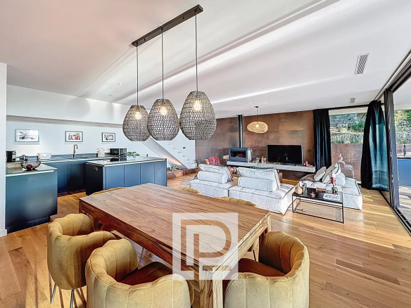 À l’étage, une très grande suite de 50 m² avec dressing, salle de douche et accès direct à une vaste terrasse panoramique.