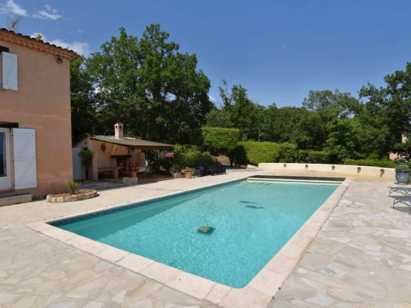 Dans un secteur résidentiel avec une vue sur le lac de Saint Cassien, villa de 163 m² environ comprenant: au rez-de-chaussée, entrée, un séjour avec cheminée, une cuisine équipée, un chambre avec salle d’eau. A l’étage, bureau en mezzanine, une chambre avec salle de bains, deux chambres, dressing et une salle d’eau. Piscine et cuisine d’été. Terrain de 3500 m².