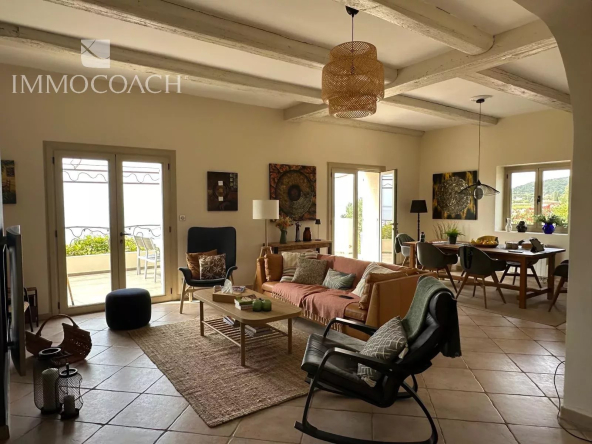 Exclusivité IMMOCOACH – Située dans un secteur préservé de Carqueiranne, cette villa de 150 M² vous séduira par sa belle vue sur la mer et les restanques environnantes.