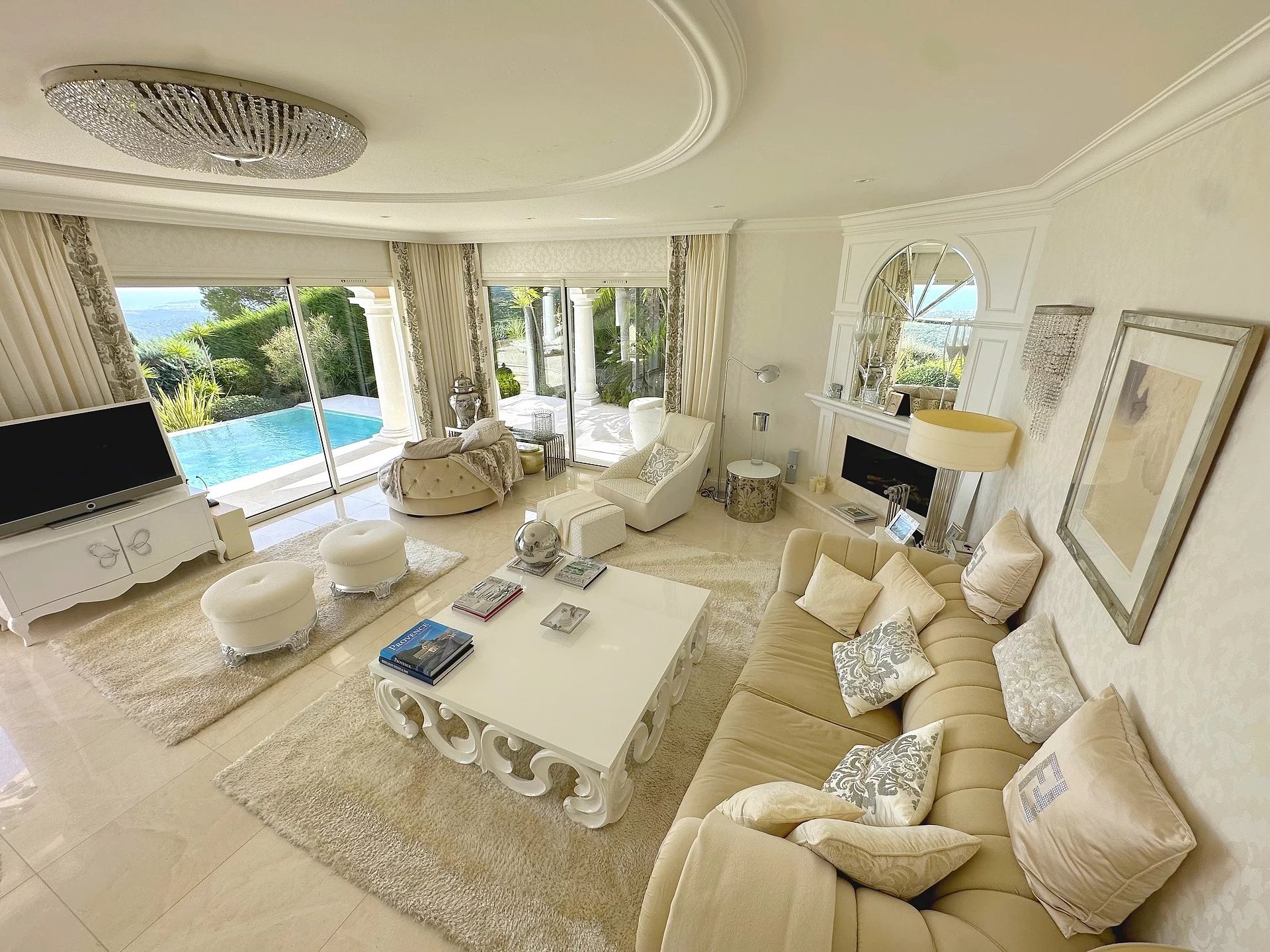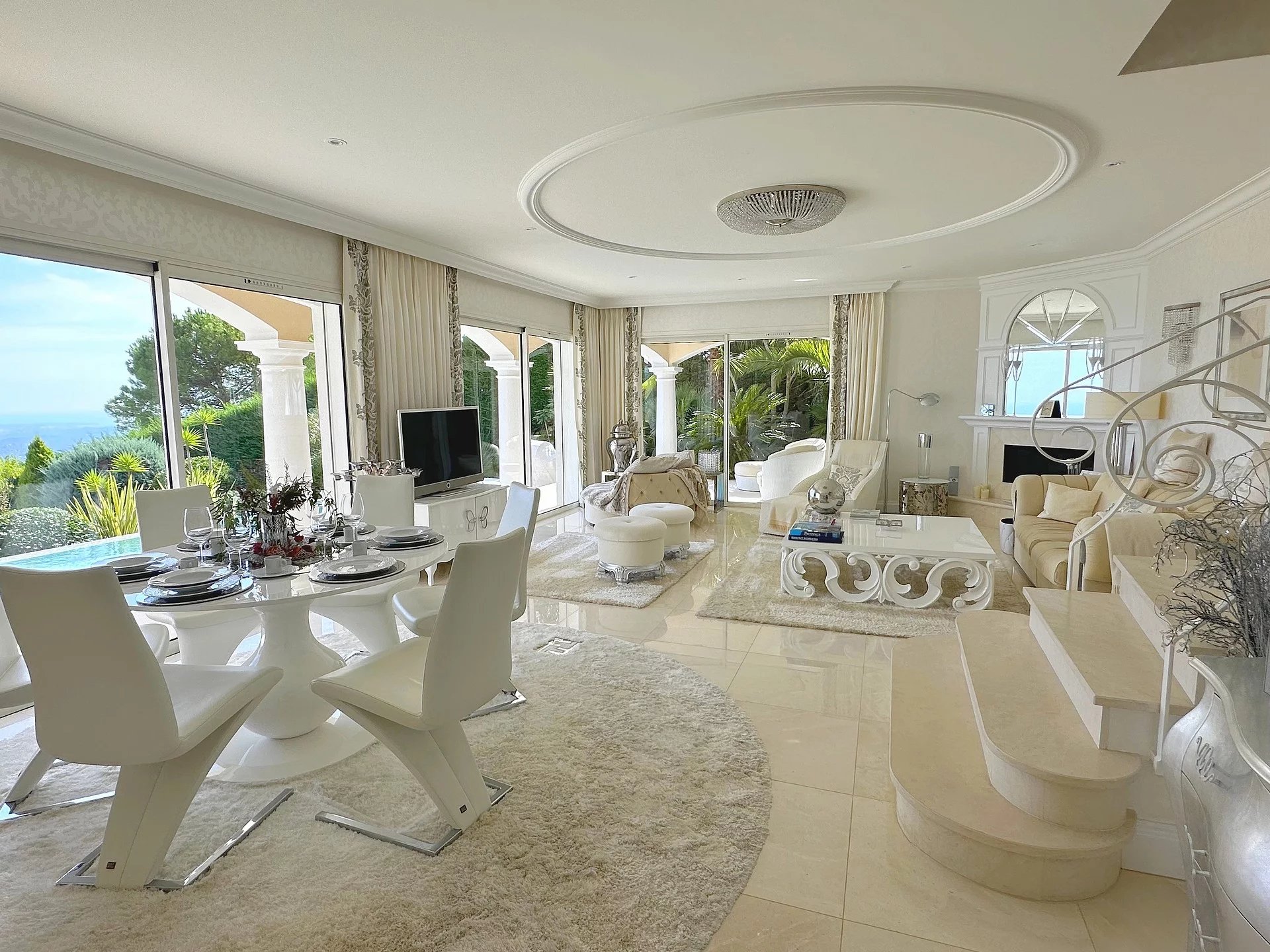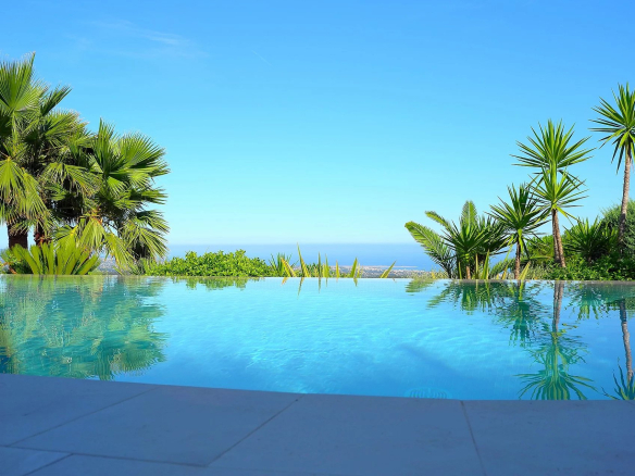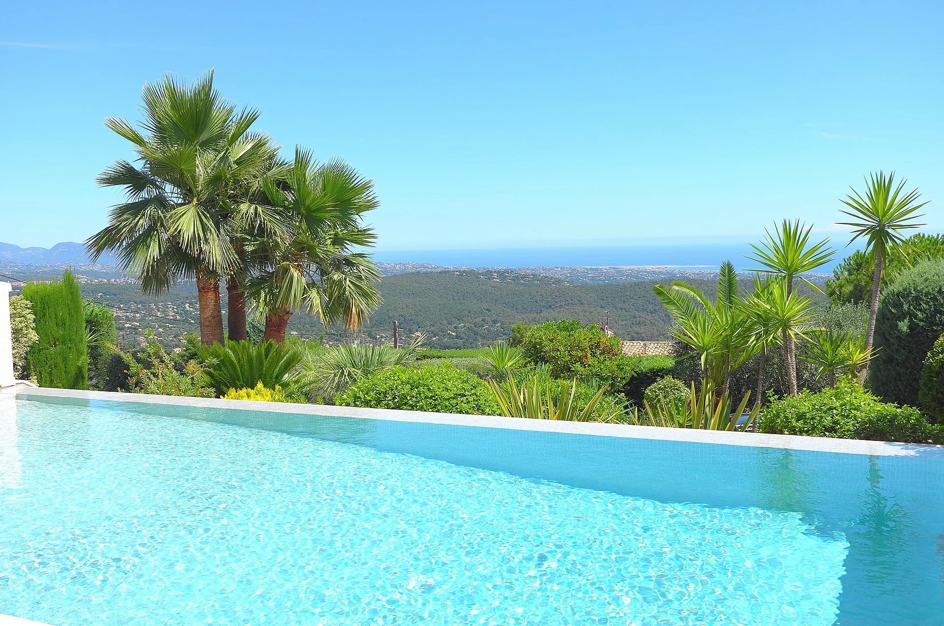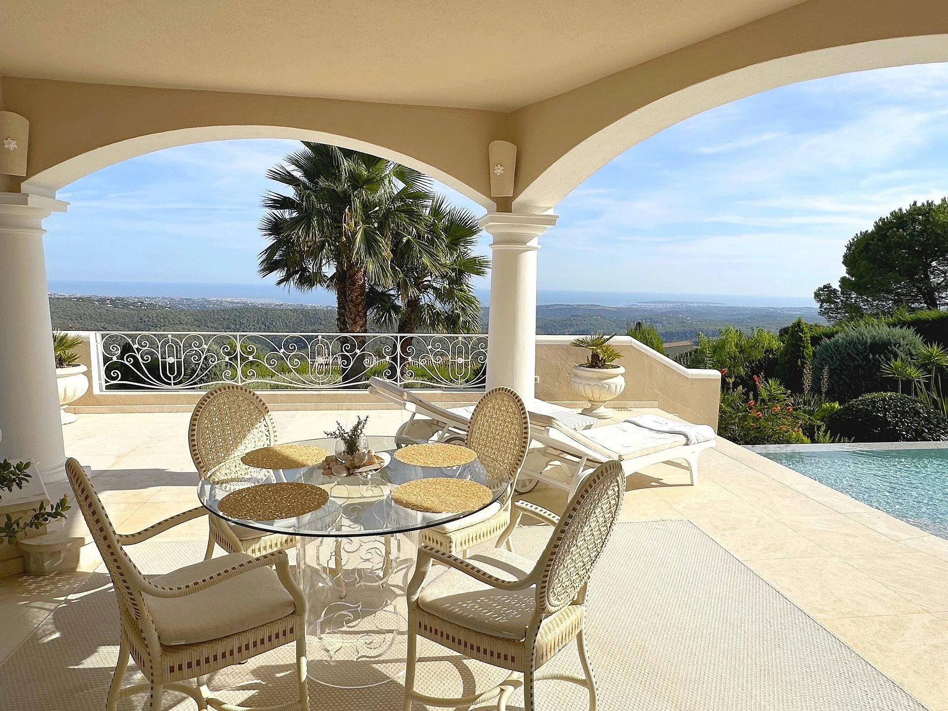 Au sein d’un quartier résidentiel, proche du village, superbe propriété bénéficiant d’une vue panoramique sur la mer et le village de Tourrettes/Loup.