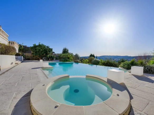 Piscine chauffée à débordement, avec jacuzzi.