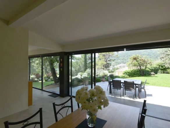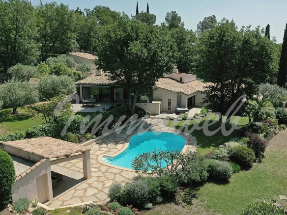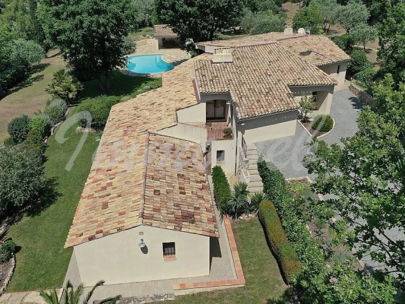 Avec une vue sur le village, belle villa de 300 m² environ comprenant: entrée, un salon, une salle à manger avec cuisine ouverte équipée, véranda climatisée, accès grande terrasse, buanderie, cave, une chambre maitre avec dressing et salle de bains, bureau bibliothèque, trois chambres et deux salles d’eau. Deux chambres indépendantes et une salle d’eau. Double garage. Piscine chauffée avec pool house. Terrain paysagé de 6500 m². Prestations de qualité.