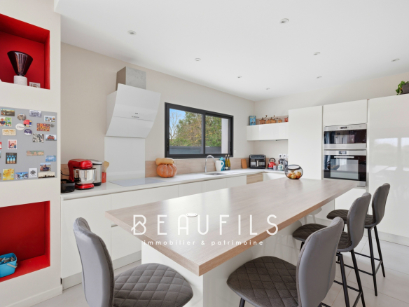Matériaux nobles et finitions haut de gamme : parquet massif, pierre naturelle, domotique